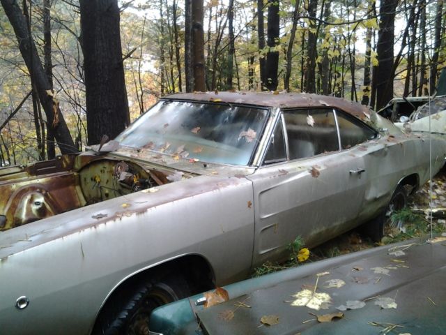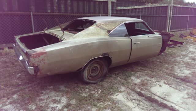 | 1968 Dodge Charger Project this car decodes to be a 383 High Performance motor.Car needs floor pan repair panels, runk floor repair panel and two lower rear quarter panels, oors are good rockers look good and bulkhead etc is good, his body is very usable and will make a nice car if done correct. Most of the interior is in the car, issing passenger seat. There is no engine or transmission in the car but I have several available to me for around $2000 for both. |