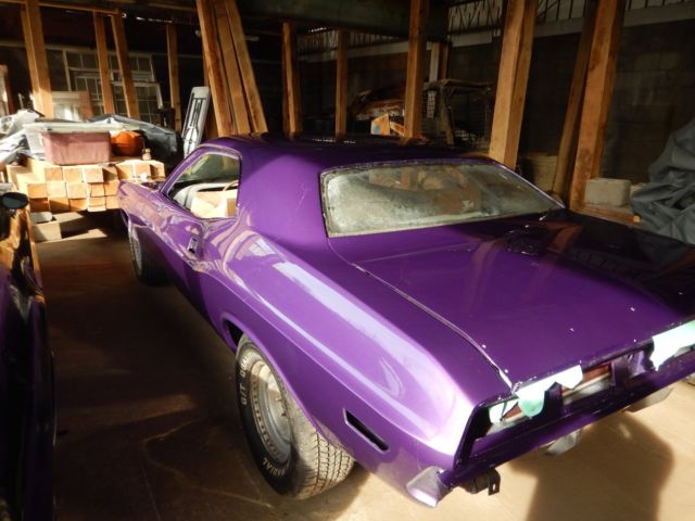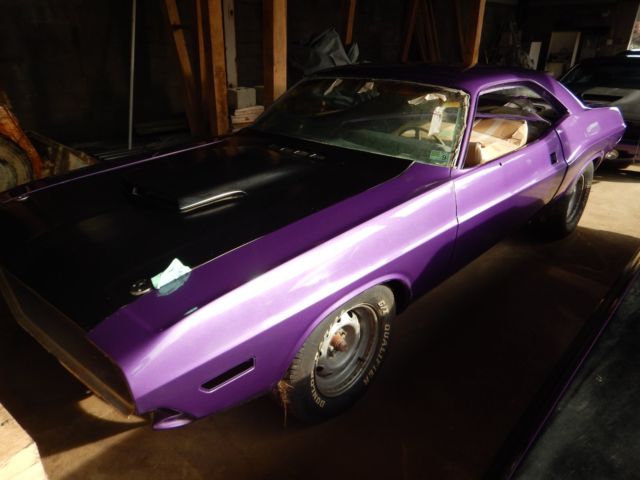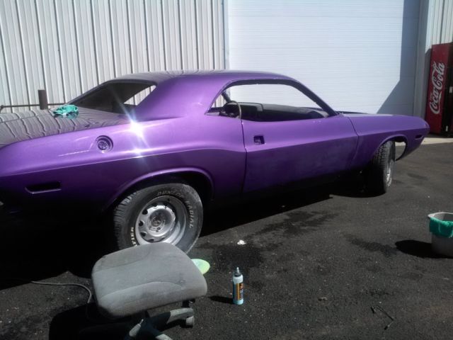 1970, /A Dodge Challenger, c-7 Purple with a white interior. This is an original rust free 4 speed car. I had it painted last year. This car has 100 % of its original sheet metal, nd has no rust. It does not have its original drive train, ut it comes with perfect t/a block and heads, long with a complete 68 340 engine, nd a 833 4-speed transmission. The grille and all of the parts are there to complete this car. Call with questions 301-542-6702On Jan-06-16 at 05:14:29 PST, eller added the following information: There is no intake or air cleaner in auction, ut I have nos carbs, n intake, nd an original air cleaner that I purchased for $3500. dollars that will go with the car if it reaches $32,000 Thank You for the questions feel free to call.