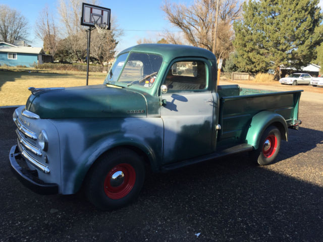 Oldie but Goodie Too much to list so im gonna be brief Rust Free 1950 Dodge Pickup Flat Head 6 with 4 spd trans new Coker style powder coated wheels and tires with shiny new hub caps, ew brakes on all 4 corners, omplete new wiring system from front to back, dded wire for radio and dome light! Shiny new chrome grill Great running flat head 6 offenhouser dual carb intake with 2 one barrel carbs, eaders and dual exhaust with blue streak glass packs. Valves adjusted recently and oil changes done regularly with Valvoline 50w oil, pgraded aluminum radiator and water pump! Lots and lots of extra parts and original seat- see pics for details, verything works on this truck and runs and drives great. Any questions comments or offers please call or text 208-608-3612 serious buyers only please truck is also for sale locally! Clean Idaho Title