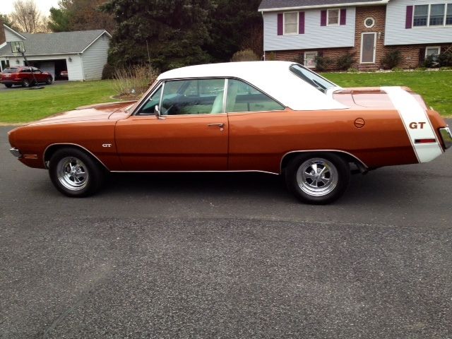 | I am selling my 1971 Dodge Dart GT with 69K miles. I am the third owner in 43 years. This car is beautiful. All rust has been removed and has a new trunk pan. It has the original 318 automatic engine and transmission. The interior is in excellent condition. Car has a new custom paint job along with a new vinyl top. new crager wheels and tires. new exhaust system. new air shocks. new valve covers. intake. and 4 barrel carburetor. This car is a head turner and sounds great. Over 26K invested. My loss is your gain. |
