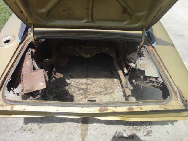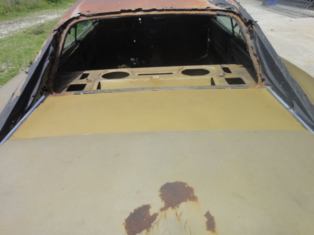 NO TITLE. Car was purchased at an abandoned car auction in the early 80's and has sat in pasture on my farm since that time. 318 engine (engine seized) with 904 transmission, driveshaft and 489, 323 open rear end. The good; excellent front frame rails, front inner fenders, firewall, inner and outer rocker panels, radiator support, cowl, side glass, very nice doors and door jams, dutchman panel, dash. The bad; rear frame rails gone, floor pan, trunk pan, roof, quarters. Fixable(?), front fenders, hood and trunk lid, cross member. Comes with fender tag and build sheet, a good windshield, front and rear door cards, arm rests, window cranks, front and rear upper door pads, front seats with tracks, torsion bars, front anti sway bar, starter, 3 speed wiper motor, wiper pivots and arms, heater/ac box, fresh air intake box, master cylinder and booster, all will need to be restored. NO TITLE. I have tried to represent this car as best I can. It is almost 50 years old and has been out in the elements for most of its life. However there are a lot of good usable parts on it if you don't plan on restoring it. If you have any questions or concerns I will try to answer them to the best of my ability. This is a no reserve auction so the car is going to sell. I will not end the auction early so don't ask. NO TITLE. |