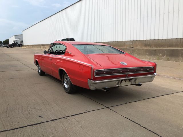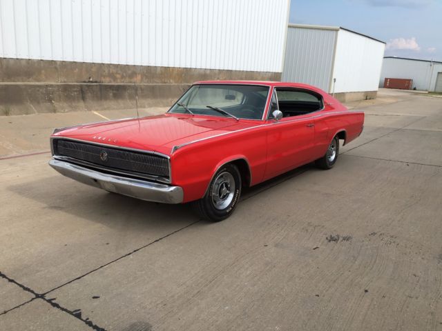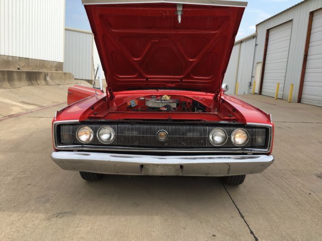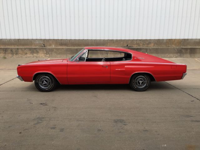 Very nice and clean 1967 Dodge charger, Viper red paint from 2003, 383 engine w/Comp Cams Extreme Energy cam, Edelbrock preformer RPM dual plane intake, Edelbrock 750 carb, Hedman headers, 40 series Flowmaster muffers w/2.5" exaust, Mopar Performance electronic ignition conversion, Mopar Performance torque converter, Torqueflite 727 w/B&M shift kit. Headlight motors and wiper motor have been rebuild and put on last year, the dash pad is new and electro luminiscent gauges have been professional restored and installed.The interior needs to be freshened up but is not torn or damaged just old.