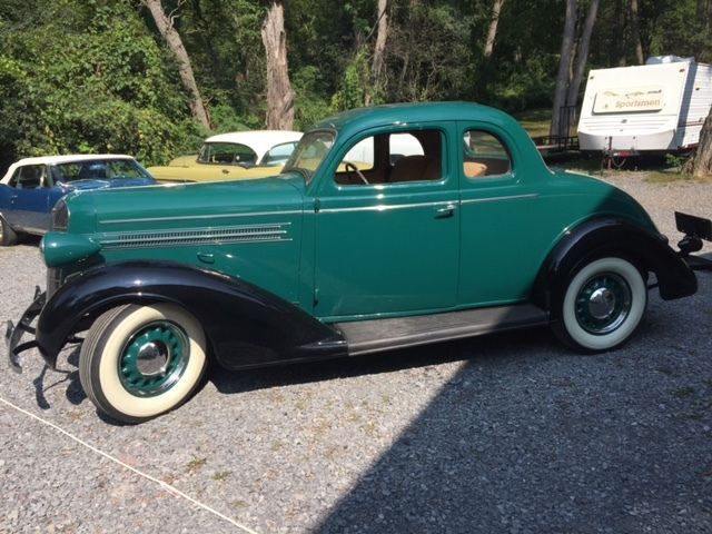 1936 Dodge Rumble Seat Coupe - This car has been repainted and has new tires, brakes, wiring harness, upholstery, most all rubber seals have been replaced, all dash trim has been re-plated, steering wheel was restored, new exhaust system, new window felts, new glove box liner and new rubber floor mats. The engine was rebuilt about ten years ago and runs excellent. Tranny and rear end were serviced with new seals and had their fluid changed. The fuel tank and radiator were removed and serviced. Car runs and stops as expected for a 1936. There are several paint chips and blemishes in the paint. It was painted for overten years agoand is still very presentable! Front and rear bumper have not been re-plated but are nice. I have several original manuals for this car which include the following - Glove box, parts and repair manuals. I also have several boxes of NOSparts for the engine, steering and other used parts. Buyer must arrange payment and pickup. Please call me if you have any question 607-316-1451