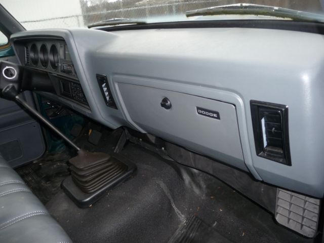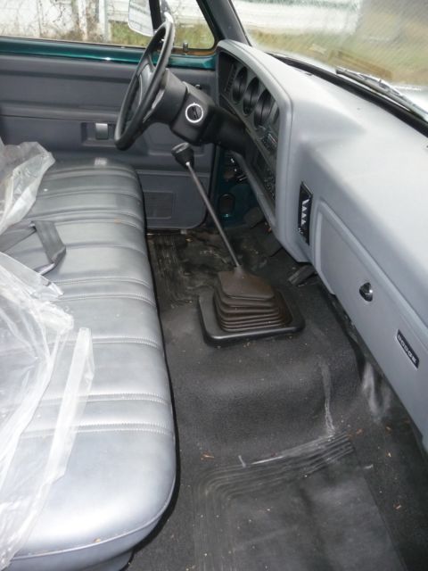 It is a 2 DR 2 wheel drive FI V8 engine with 4 Spd standard transmission, air conditioning, tape deck, clock, and radio, roll down windows, wing windows, a "Club" Cab and is a slightly faded on one side from the Sun Emerald Green metallic color.
