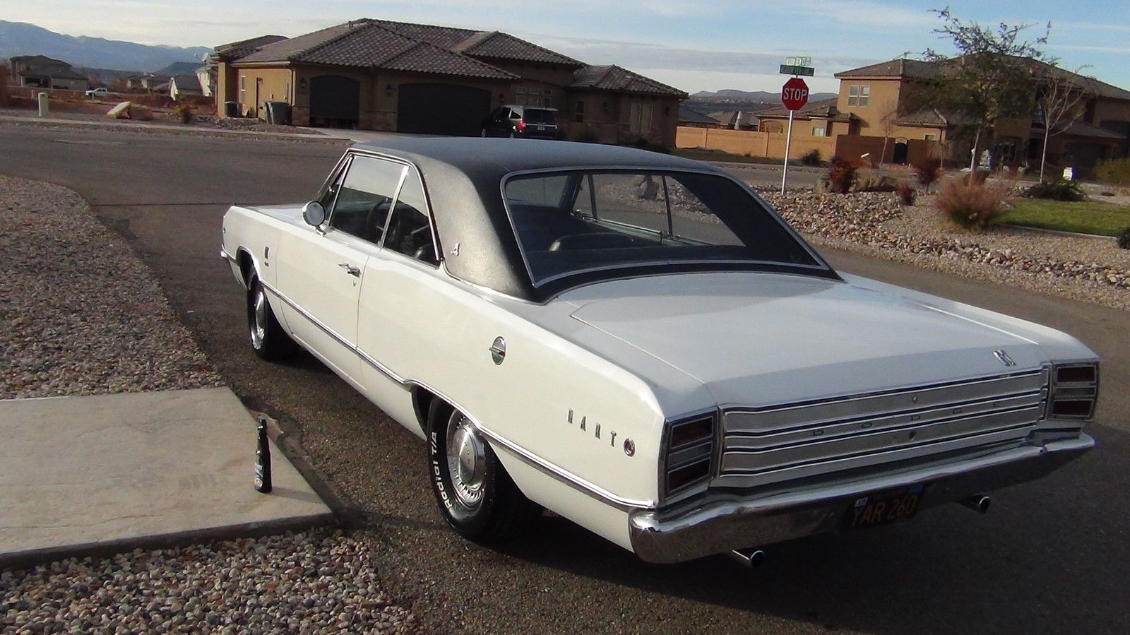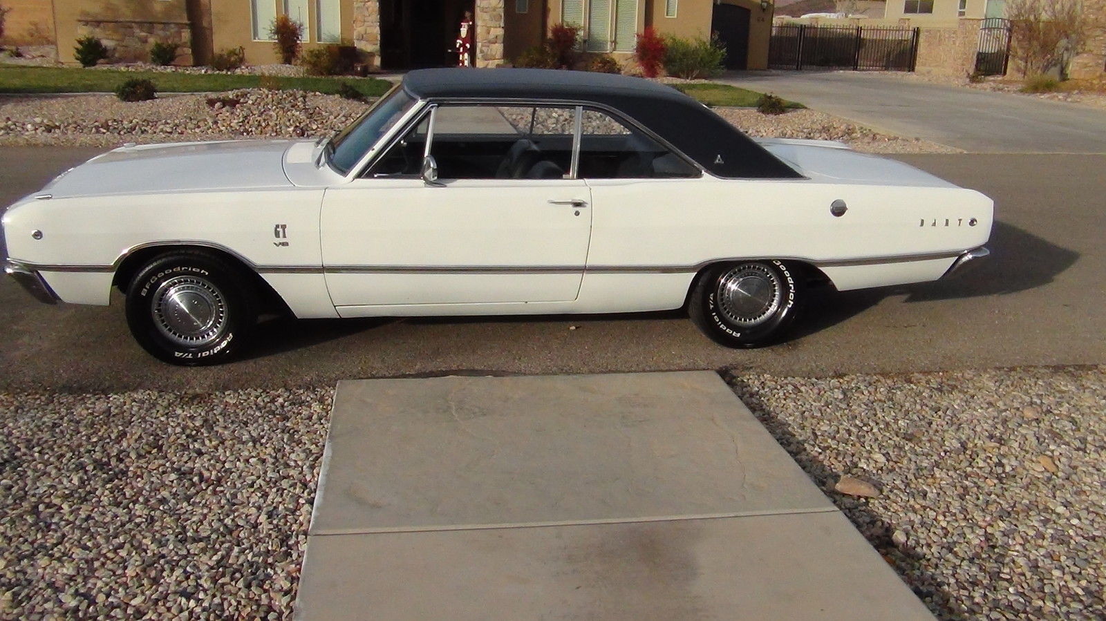 | 1968 Dodge Dart GT this car is out of California and it still has the black and yellows! No rust there is some bubbles below rear window. Looks like from the moisture trapped from repaint. This car has the original black interior. car was very desirable as it was originally red with black vinyl top. Top is in great condition. Everything works. replaced heater core and all hoses. blower works great turn signals on hood work. all lights work. Original numbers matching 273 2 Barrel with 3 speed auto. shifts great. Heads have been redone. Receipts from last owner for brakes. steering and many bushings. This car sounds great. runs great. starts every time. Original hub caps all bumpers are straight in good condition. BFG tires have plenty of tread. All windows roll up and down. there is a tear in the driver seat that can be repaired or recovered easily. Has all seat belts. stereo has iPod hookup. Car drives straight no shakes. very reliable. Don't go broke trying to piece together someone else project. Drive while you restore and enjoy the car. Not a numbers purist? This is the perfect Dart platform for your 440! Mopars are hard to find that are clean no rust. I have seen many that need a lot of metal work. Bring it back to original or resto mod for your mopar dream. This car is not a dead project in boxes. I am available any time to take more photos of whatever you would like to see. I will be straight up with you on what is needed and can call me at 435-251-7535. Clear Title. |