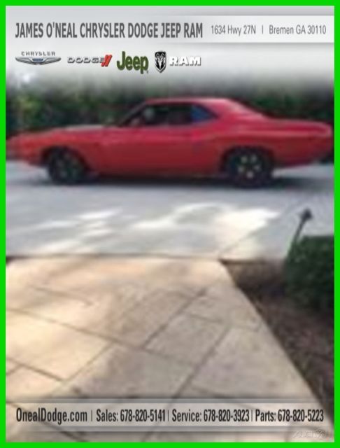 1972 Dodge Challenger Resto Mod- ' Challange This '. Over $200,000 was spend building this car. It is a Meticulous build. The build started with a Hemi 6.1 Liter engine being installed from Street & Performance with all the chrome accessories added. The engine compartment is stunning. It has Polished Radiator with an Electric Fan to keep it running cool. The transmission is a 545RFE 5 speed automatic that shifts flawlessly. It has Polished Magna Flow Mufflers that give this Challenger a great rumble sound. There are Baer Brakes on all 4 wheels that are power with QA1 Front K Member all Tubular as well as Ridetech -Ride Pro air Ride Shock Wave Style on all 4 corners with controls programmed for the proper ride height and stance.It is riding on FE Forged Black Wheels with 225/45/ZR18 tires on Front and 275/40/ZR18 on Rear. The body is super straight with the Model Frontend refreshed by Streetmetal Concepts out of Florida. The paint is Torred Red with Matte Black accents and it looks great. All the body gaps line up great. The Matte Black Go wing is killer. It has LED Head lights and Fog lamps.All lights work of course. The Custom Painted Gray grill Bezel and Rear Valance round out this Custom Body. The inside has Dual Power Leather seats, Touch Screen Navigation Stereo, Power Locks with Keyless Remote, Custom Gauges and Air Ride Controls. It has Vintage Air System that blows Ice Cold. Everything about the interior is class. This car is a real blast to drive and has all the comforts of today''''s best cars. Everytime I look over this Challenger I could find more stuff to talk about. It is truely a one of a kind ride.