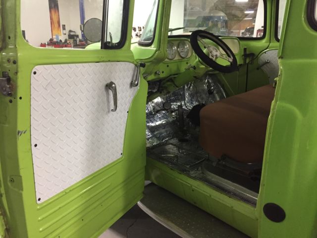 Cab And Bed 1957 was the first year of the Cab Forward design, which continued into the early 1960s. This truck has wrap-around glass front and rear, and a dually long bed. The cab has been rust-proofed and Dyno-mat installed. A new wiring harness was installed and Dolphin Gauges in the dash and the seat has just been re-upholstered with carpet and head unit still needed.