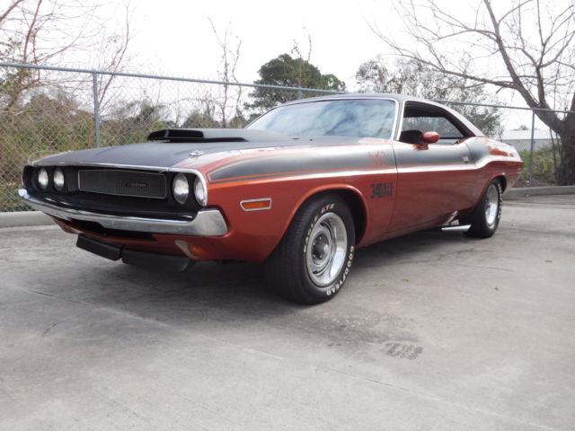 Up for sale is my 1970 Challenger T/A. Numbers matching car: engine, transmission, radiator support, cowl, fender tag, dash tag, and door tag. The car is in the T/A Registry, and I have the Boradcast sheet and the paperwork that decodes the tag with options by Barry Washington at the T/A Registry. Disk Brakes up front, Power Steering, 3.55 Sure Grip, Rallye Dash, console, AM-Radio with rear speaker, dual painted racing mirrors. Original metal, solid, no rust. Space saver spare and bottle along with the jack. When restored, the owner at the time changed the interior over to black (original Burtn Orange interior) and also added a vinyl top for his personal taste. I think it looks great and breaks up the Burnt Orange color which makes for a stunning look. Everything works, lights, horn, radio, wipers. I just replaced all the ignition parts to include the engine and ignition switch harnesses, ignition switch, alternator and regulator, ballast resistor, and a new distributor (single point). The car had the Mopar Electronic ignition system on it when I got it, and it finally gave out so I went back all stock. Starts right up! I've owned the car for 3yrs now and have enjoyed it immensely. Runs and drives great and is a very clean and presentable driver. It's an older restoration, not a trailer queen. I repeatedly take the car out for long drives, but lately, that's not happening and I feel it's time to move it on to another owner who'll drive it and have fun with it like I did. No trades. I have it listed locally, so I reserve the right to end the auction early. Feel free to call me if you want to know more. Dave - 281 - 660 - 6090On May-02-17 at 18:48:37 PDT, seller added the following information: Phone number is 281 - 660 - 6069 - thanks!