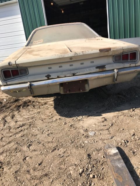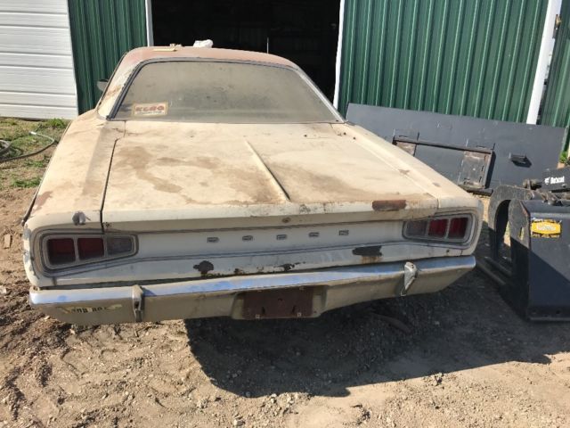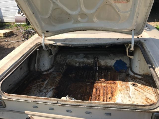 | this car has an amazing body there is som rust on the trunk and the underside of the car the only rust hole is on passenger side very bottom of quarter panel I believe the motor is a 318 and auto on the colum the interior is all original but is crusty this was a white car with green top motor is loose but carb is shot. I have a 440 big block from a 69 charger that goes with the car along with big block tranny this body on the car is amazing and very hard to find in this condition all glass is good to my knowledge that I can see green interior tires have tubes in them not road worthy tires good car to restore any questions msg me oh and the odometer reads 35000 however I don't know if it rolled over or not the dent in the rear end of the car is just a dent not a rust hole and the blemis on the driver side quarter panel is not rust |