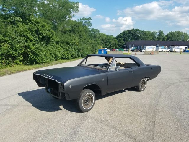 | 1968 Dodge Dart GT Hardtop 318 / Automatic originally Burgundy / white.This is a project that was started and unfortunately that's where it is now.It has been Media blasted on the roof engine compartment and inside trunk and floors.After blasting it has been coated with PPG DP90 epoxy primer.The front of the car including front frame rails are rust free and in excellent condition however the back has been patched on the lower quarter panels. The very rear of rear frame rails are rusty on one side by spring perch.The trunk floor has minor rust also but around the rear window and behind rear bumper are rust free.It was a complete car when disassembled so all parts to complete the car are included.There are new AMD parts included as well which are...1- quarter panels ( full )2- outer wheel houses ( L& R )3- trunk floorAlso there is a rear frame rail set ( L & R ) that is mint and has been blasted and epoxy primed.The motor ran great when pulled and still has original plug wires and paint on it.I also have a 8 3/4 rear end housing that has been blasted / primed as well.Car has good title with original vin tag / fender tag and body numbers are intact and match as well.Please email or call with any questions (502) 639 7593Thank you & Good luck! |
