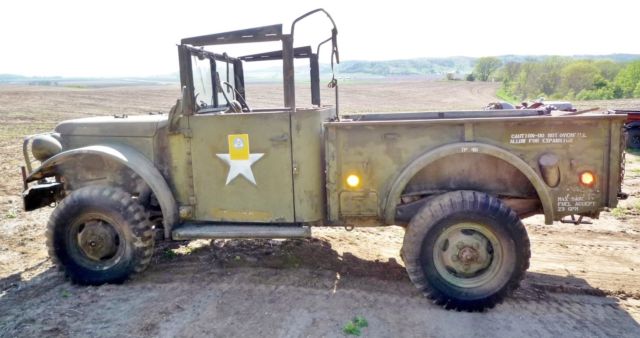 1963 Dodge M37B1 Cargo Truck. This truck is mostly complete, except for the passenger seat cushion assembly, no spare tire and an incomplete gas can mount on the right front fender. The odometer shows 31,100 miles. The date of delivery was July 1963. I often wonder if I may have seen this exact truck when I was in Vietnam. Prior to acquiring this truck years ago, I had a very nice 1953 M37 that my nephew always admired. He wanted one of his own, so I bought this one for him. We drove it to our farm, where he fooled with it off and on for a couple of years, until other things, like girls, became more interesting. It has been sitting in a corncrib orold cattle shed ever since. It is time to let someone else enjoy it. The truck apparently had been sitting out for some time when I acquired it, resulting in the wood cargo seats deteriorating. (All of the hardware is present, so the wood slats are an easy replacement.) The soft top was mostly in shreds, which caused the exposed plywood base and back cushion cover on the passenger seat to rot away. The driver’s seat cover is mostly gone, but the foam seems to be in surprisingly good condition. (The foam may not be original.) The truck has an “anti-theft” device on the floor under the steering wheel. It was common in Vietnam to loop a chain that was welded to the floor through the steering wheel and padlock it so no scoundrel from another unit could take the truck for a joy ride. Remarkably, there is no rust in the bed or cab from the exposure to weather. The only rust I can find on the truck is where the base of the folding windshield rests on the cowl, and apparently trapped moisture between the base of the windshield and the cowl. When the windshield is folded, a series of small rust holes concealed by the base of the folding windshield can be seen. The holes do not show when the windshield is upright. When I went to move the truck from a corncrib to the cattle shed several years ago, the fuel pump had failed, so I rigged up a gravity fuel feed and drove it out to the cattle shed and backed it in, where it sat until I pulled it out to take the attached pictures. I will hook up the gravity fuel feed so the successful bidder can drive it onto a trailer, if the successful bidder brings two strongbatteries to start it. The side window glass is perfect, but the windshield glass is delaminating at the bottom of each pane. The brakes do not work. A simple trailer hitch has been welded to the back of the truck, which can be easily removed if desired. The M37B1 had the spare tire mount on the driver’s door, but this truck thankfully has the old style spare mount in the bed. There is no spare tire. Four additional serviceable tires and wheels are available to the successful bidder for an additional $200. I kept the genuine GI bed canvas enclosure from my M37 when I sold it. The successful bidder may buy the complete bed cover, which consists of three bows, the main canvas, and both end flaps, with the original ropes still attached. A brief check of the various canvas reproducers seems to show that reproduction canvas bed cover alone would cost over $600, and that does not include the bows. (I saw no bows being offered by any canvas vendor.) The successful bidder may buy the complete bed cover assembly as described for $600. My nephew acquired a genuine GI heater assembly that the successful bidder may also buy for $200.00. I cannot guarantee the heater is complete, but appears to be. (The truck has some kind of heater mounted under the dash and wired to one battery.) My nephew also acquired a hardtop kit. The kit uses the CCKW hardtop with adaptors to fit it to the narrower M37 cab. It goes with the truck. It was never installed and is not complete. The truck is located near Castana, Iowa. The truck is sold as is, where is, as shown, with no warranties of any kind, and no return privilege. A non-refundable $500 deposit is required within 24 hours of close. Certified funds required within seven days of close. Buyer must arrange to pick up or ship the truck. Payment must clear before the buyer can take possession. Title is clear and will be signed over to the successful bidder upon full payment. Please email with any questions. Please do not ask me to call you. Thank you for considering this nice old M37. |