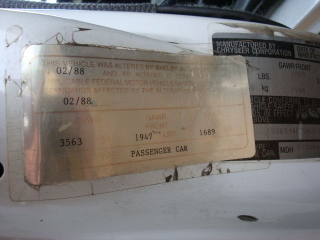 1988 Shelby CSX-T #103 of 750 built by Shelby's magic car factory. Cars originally came with a turbo , non-intercooled motor. This car has been upgraded toTurbo II with performance upgrades, anda high performance A555 transmission ( 5 speed ). Its been a project ca, but its almost done. Engine has been rebuilt, and sounds really good. Has a Taft S2 performance cam,and 3 bar ma, and turbo II computer. Also has a Walbro high volume fuel pum, larger garrett turb, GLHS intake,and larger turbo II fuel injectors. Needs a front end alignment, due to new ball joints. Also needs a muffler to quiet her down a bit. Rust free west coast car. Starts and yard drives. Includes the Shelby Certificate of Authenticity, 100dollar value. Includes a laptop for smec computer control ( software extra , if so desired. Looks better in pictures, than in real life.....the original white paint is weak Will need a tow dolly when picked up ( not included in price of car ). Price is for the car only, all other expensesare at purchasers cost. Sold AS/IS,no warranty expressed or implied. Also sold here locally, and reserve the right to remove listingearly. $100.00 instant PayPal deposit required within 24 hours,with remainder in person. Car must be picked up within 7 days, afterdeposit. Check out my other Ebay ads, I have two other87 csx Prototypes that are ( 8V & 16V ) Thanks Any questions please ask ....and will answerwhen home from work. |