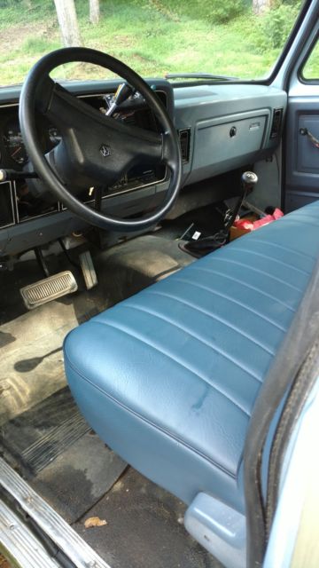 Power Ram . Stripped to bare metal and brush painted Rust-Oleum red oxide and then painted army olive . Myers snow blade included . Ac /radio do not work . Used as a plow truck . Runs good like it should. Body is real straight . Drivers floor was replaced with a factory replacement from LMC truck . Only real rust on the truck . Leaky vent and wet carpet . Dash has no cracks . Seat recovered like factory . This truck has not been abused just used . Great work truck Selling many things to raise money for knee replacement uhg . Any questions 434 262 2149On Jul-25-17 at 14:09:49 PDT, seller added the following information: the truck has only 57000 miles on it .The site would not let me put that in GO FIGURE ! Uhg I am the third owner. The original owner painted it so poorly I had to remove it. I decide to make it a military look !!!