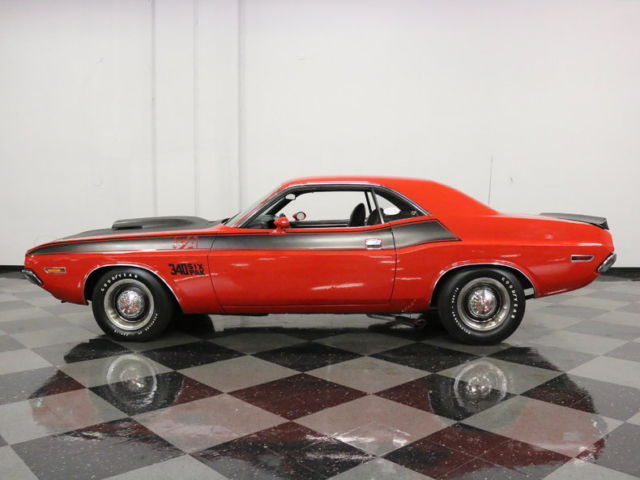 This 1970 Dodge Challenger T/A occupies a rare but multifaceted place in automotive history. Sporting unusually low actual miles (under 57,000!) and in faithfully restored condition (with numbers matching no less), it's a veritable museum piece, but one that gives a hearty nod to a bona fide Trans Am racing heritage. The level of meticulousness and detail that went into its restoration is truly rare. Its history is properly documented as an entry in the National T/A registry. It even comes complete with the same factory broadcast sheet it rolled off the assembly line with!Challengers of this era cut an impressive presence on their own, but the restoration that went into this T/A take this one to a whole different level. Its quality and precision are evident right away. The bright red paint job, not only factory-correct, but literally the same hue it was brought to life with, shines convincingly from all angles and is complemented by the broad blackness of its scooped hood - a feature unique to T/As - as well as the stripes occupying the upper region of its sides. The black "340 6-pack" decals adorning both of its fenders give proper notice that this is truly a special Challenger. In the back, the spoiler - with its "Challenger T/A" lettering - remains unfaded. Take a lap around the car and you'll notice the uniformity of the lines - its hood, doors, fenders and trunk all line up with admirable precision. The chrome looks great, as does its fully functional scoop on that black hood, and the rest of the trim follows suit. Even the hood pins have a shine to them. There have been no shortcuts taken with this one and it has clearly been looked after carefully since its restoration, almost as if it's been hermetically sealed for protection. Not surprisingly, the interior reflects the same care and condition. The black, high-backed vinyl bucket seats straddle an equally black center console with its signature low-profile gear selector - and all have been faithfully restored. The door panels also look supple and shiny, as well. The rear vinyl bench seat, the black trim on each side and the package shelf to the rear also attain the same high standard. Everything inside retains its authentic stock look and the original AM radio still occupies its place in the dash. Even the dash pads, almost always where you see the first signs of decline in an interior, look good. The factory gauges are all in working order, with lenses that retain a fresh transparent look. The manual windows all roll up and down smoothly and seal properly at their top position. All are testimony to just how much attention went into this restoration. The Challenger T/A has a mechanical history unlike any other. Relatively few of them were made and they were only around for this 1970 model year. Their "T/A" model designation reflects a true racing heritage, as they were configured specifically to be the street-ready counterpart to their brethren in Trans Am competition. With a 340 cubic inch V8 as its foundation, three 2-barrel carbs comprising the T/A's signature "6 pack" configuration sit on an aluminum intake manifold and are topped by an oval-shaped, open sided air cleaner. The V8 gets a supply of cool dense air through that broad scoop in the hood. By several accounts, Dodge downplayed the power output of the T/A's configuration and its advertised 290hp is up to 30 less than what some give it credit for. It's connected to the HD727 3 speed automatic transmission it originally came with and exhales through its distinctive pipes that show themselves just in front of the rear tires. Dodge added power steering and power front disc brakes for increased drivability in everyday conditions and both systems have been restored to optimum operating condition. In a further nod to its racing heritage, the T/A also has the distinction of being the first factory-assembled car to feature wider tires in the back and this Challenger is fitted with the proper Goodyear Polyglas tires and 15" stock Challenger rims it rolled off the line with.Looking for a classic that occupies an even more rarified position due to its unusually low miles and precise restoration? This is the car for you. Call today!