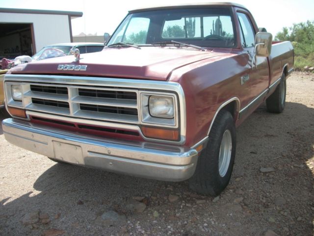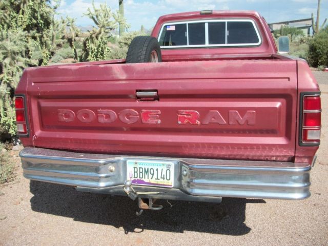 1987 Dodge D 100 318 motor 2 bbl carb, 727 auto transmission which was rebuilt 2 years ago, engine was reringed,and new rods, and main bearings, also new cam bearing, and RV cam was installed.Heads we cleaned new seals were installe, new parts includ, alternato, starter, power steering pump, water pump and fan clutch.3 core radiator,electric fuel pump, new ball joint, rotors and bearings,new sending unit in fuel tank, new start switch, new signal light switch, aftermarket distributer, new plugs and wires. glass is goo, i have a folder full of receipts for parts Has factory a, new ac compressor, its been sitting so will need a recharge Now for the ba, I took truck to emissions, it passe, but ran bad after, it misse, and stalls when put into gear, Some shops think it maybe a manifold lea, Yep i tried the carb spray trick.could not find the prob. The truck is an arizona truck so no rust, but paint job sucks . It would have to be towe, as it wont ru, and no work can be done where its at. , shown by appointment, truck is in apache junctio, no trades |