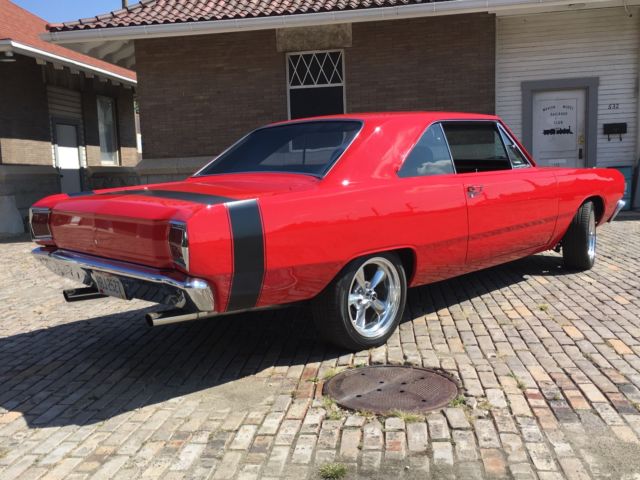 Hello, For your consideration is this beautiful 1967 Dodge Dart GT a 318 Cu. In. small block V8 engine putting out approx.275 HP. Dual 2 1/2"exhaust system with Flowmaster mufflers and Flomaster stainless steelexhaust tipswith Hooker headers. Automatic 3 spd. transmissionand a 3.45 ratioopen rear end. Power steering and manual brakes ( front brakes are disc type) Interior is in fantastic shape with many new updates which includes new carpeting, rear package tray with newspeakers,head liner, dash pad, lap belts,kick panels with built in speakers,gauges. The frontbucket seats are from a 2014 Dodge Dartand the back seat was custom made to match. The seats are a dark charcoal with red piping to match the exterior red. The body and paint are in great condition. The paint has been on the cartwo years and has a very nice luster. The body panels are solid and flat.Some of theexterior trim is new which includes thefront and rear bumpers, tail lights, door handles, windowfuzzies, windshield and windshield chrome trim, rear window chrome trim, weather striping,rear view mirror and new locks. The car does have a few bugaboos but nothing serious. the gas gauge isn't very accurate andit likes to leave a few drops of oil on the floor,I believe its because it doesn't get driven much. Other items of interest The car has been converted to a larger4.50" Chrysler wheelbolt pattern. New 17" Ridler 5 spoke wheels, Falken tires, new radiator and clutch fan, new 600 cfm Edelbrock carburetor with an electric choke, new intake manifold, new HEI ignition, engine dress up kit and much more. The car goes down the road nice and straight, sounds terrific and gets a lot of attention. This is a very niceentry- level classic car that will win some trophies at the local car shows and cruise-ins. Please look at my feed back and bid with confidence as this is a nice carthat will continue to climb in value. Questions? you can email me through Ebay or you can call me @ 740-361-8645 At auctions end the successful bidder will be required to pay a 20 % deposit due within 48 hours and the balance due at pick up or prior to shipping unless otherwise discussed. Shipping charges and taxesare the buyers responsibility. I have a clean Ohio title in hand. Thanks for looking and Good Luck!! |