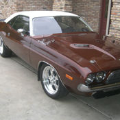 | 1973 Dodge Challenger with 1970 440 recently rebuilt. 727 Trans with Slapstick. Vinyl Top, in Metallic Autumn Bronze Finish. |