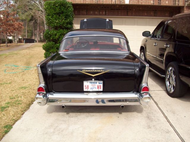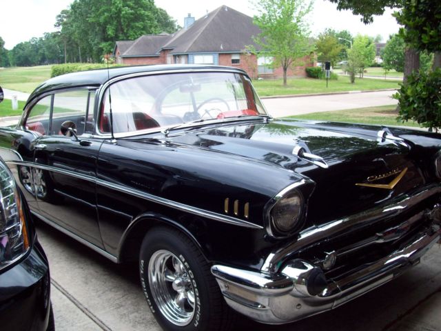 | Condition: Restored to like new condition with all new parts and accessories. Features: 1957 Chevrolet Bel Air 2 Door Hardtop Coupe. restored with 350 CID/ 400 HP crate engine. dual quads. 350 Turbo automatic. Vintage Air Conditioner. all new interior seat covers. door panels. seat belts. carpets. all new exterior chrome trim bumpers. grill. side panels door hardware. new American Racing wheels with Firestone tires. new brakes. new springs. new mufflers & tail pipes. new windshield. new AM/FM/CD player and new paint exterior. History: 2nd owner. purchased from individual. Shipping: No shipping Buyer is to pickup in Montgomery. Texas 77356 Payment: Cashers check drawn on local Bank. Cash. VISA. MC. AMEX |