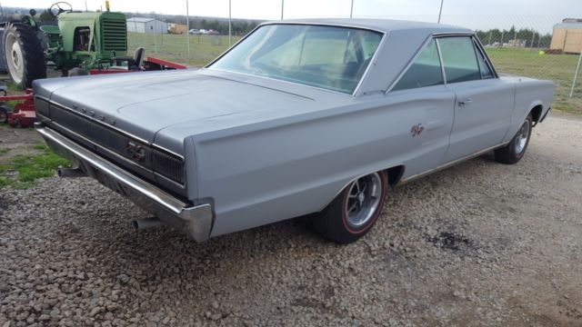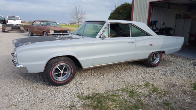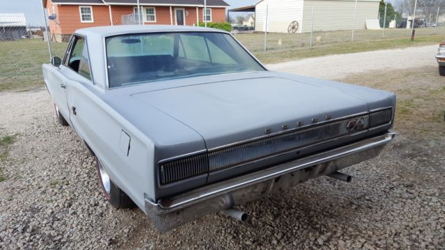 Great Car for restoration, body is straight and solid, has rust in the trunk and a small spot under the battery, the rest of the body is excellent, 440 engine is later model 1970ish will have to be rebuilt will not turn over, has the correct 906 heads, has 4 barrel carb and intake as well as correct appearing exhaust manifolds, has 727 transmission which will have to be rebuilt, rear end is 8 3/4, car is mostly complete, the top to body trim is in the car, this is a factory AC car, has the factory magnum style wheels with red line tires, does not run or drive, count on complete restorationData tag is still under the hood and decodes as following:VIN W-coronet/charger, S-special price class, 23-2dr hard top rear window rolls down, L-440 375 HP 4Brl, 7-1967, 5LA assembly plant, 5053 consecutive unit,data: Coronet R/T, 4404BL, 3Spd auto, trim copper vinyl, built sept 19, medium copper metallic, front buckets, 26 inch radiator, clean air package, 2 watt AM radio, AC with Heat, tinted glass.This is a rare car and great condition for restoration, still has body vin tag and data plate under hood,