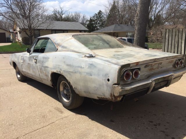 | 1968 dodge charger with a 383 4 bl. carb 330 hp automatic with a Pawsey rear end. This vehicle does run and drive. Rear frame rail‘s are in great condition along with new leaf springs shackles, And a new gas tank. Trunk pans have-been installed, will need new quarters, rockers, front floor pans. We do have the front replacement crossmember ready for installation. All glasses intacted. more pictures upon request my phone number is 701-230-1893 |