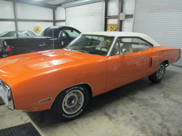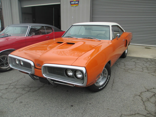 1970 CORONET R/T SAME OWNER SINCE 1972 LAST 43 YEARS. NEVER LEFT GAINESVILLE GA. ONE REPAINT ORIG INTERIOR. AUTOMATIC 440 ENGINE ALL MATCHING NUMBERS. SURE GRIP REAR END. HIGH IMPACT ORANGE WITH WHITE TOP AND INTERIOR. DISC BRAKES POWERBRAKES. BUCKETSEATS CONSOLE. FACTORY STRIPE AN RALLY WHEELS. I HAVE ORIG WINDOW STICKER. ORIG BILL OF SALE FROM QUEEN CITY DODGE HERE IN TOWN. GA TITLE FROM 1972. WARRANTY BOOK. BUILD SHEET. CAR WAS PAINTED 12 TO 15 YEARS AGO SHOW NICE WITH SLIGHT IMPERFECTIONS. CAR RUNS A DRIVES LIKE IT SHOULD. REAL DEAL 440 R/T NO RUST NO HIT BODY. ORIG AS YOUY WILL FIND THIS CAR IS ALL CORRECT. CALL 770 535 7311 WITH QUESTIONS OR OFFERS