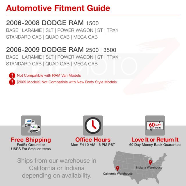 NOT Compatible with 2009 New Body Style Models DESIGNED TO FIT 2006-2008 Dodge RAM 15002006-2009 Dodge RAM 2500 | 3500 Base | Laramie | SLT | Power Wagon | ST | TRX4 Standard Cab | Extended Cab | Crew Cab | Mega Cab HEADLIGHT