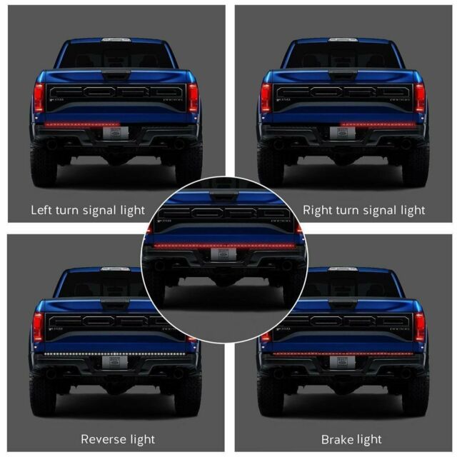 • Fit for most cars, truck, pickup, SUVs, Jeep, vans, RVs, trailers ... • 100% Brand new and waterproof • Voltage: DC-12V • Wattage: 20W • LED Type: 3528 LED • Led number: 108 LED ( 36 White / 72 Red ) • Color: Red for turn signal, parking and brake, white for reverse lights. • Flexible, soft design, waterproof and shockproof • Extremely long LED life and low power consumption • Lampholder Interface: Standard 4 PIN connector • Professional installation is highly recommended (No instruction included) • Package Includes: 1x 60" long Tailgate LED strip with 3M tape • 12 months limited warranty BRAND NEW 60" 5 FUNCTION TRUCK TAILGATE LED LIGHT BAR • Fit for most cars, truck, pickup, SUVs, Jeep, vans, RVs, trailers ... • 100% Brand new and waterproof • Voltage: DC-12V • Wattage: 20W • LED Type: 3528 LED • Led number: 108 LED ( 36 White / 72 Red ) • Color: Red for turn signal, parking and brake, white for reverse lights. • Flexible, soft design, waterproof and shockproof • Extremely long LED life and low power consumption • Lampholder Interface: Standard 4 PIN connector • Professional installation is highly recommended (No instruction included) • Package Includes: 1x 60" long Tailgate LED strip with 3M tape • 12 months limited warranty General installation information: 1. Select desired mounting position and make sure that the surface is clean and clear of dirt, water or wax. 2. Peel off the 3M tape and stick the tailgate bar onto the car 3. Connect the power cord to vehicle 4. Plug and play connectivity with flat 4-pin trailer connection harness for brake/signal, will need to tap wire for the backup reverse light Item Specifics | Bulb Type : | 60 inch 3528 SMD 108 LED Rear Tailgate Tail Gate Lamp Bar Strip | | Feature : | 12V 20W 5 Function Flexible High Low Beam Waterproof | | Interchange Part Number : | 4x4 Jeep Truck SUV Pickup Bulb Backup RDL Daytime Running Lamp | | Other Part Number : | Drving Parking Reserve Brake Left Right Turn Signal Hazard | | Color : | White Red | | Brand : | GTP | | Placement on Vehicle : | Rear | | Warranty : | Yes | | OE Spec or Performance/Custom : | Performance/Custom | | UPC : | 782298906737 | | Manufacturer Part Number : | Does not apply |