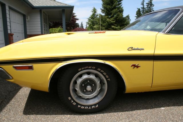 1970 dodge challenger S.E. 440 six pac. This car had been in storage for 23 years before I restored it over the last three years. It looks great with a new "Top Banana" paint job in base coat-clear coat PPG paint. The car was media blasted before painting so the little bit of rust could be repaired. The car has 63,487 original miles on it. It started out as a 383 A/T but now has a 440 six pac 390HP engine that has been completely rebuilt to stock specs with a new six pac intake, carbs and air cleaner and has only 25 miles on the drive train. New 2 1/4" dual exhaust with Magna flo mufflers and stock exhaust tips were installed. The 727 A/T has been rebuilt with a mild shift kit installed. The 3:55 rear end has been rebuilt and runs smooth and quiet and new u-joints were installed in the drive shaft. The car has been upgraded to power disc brakes on the front and the rear drum brakes have been rebuilt with new hardware, brake pads and wheel cylinders and hoses. A new gas tank was installed along with new fuel lines and a new sending unit. The seats have been reupholstered in black leather to match the original seats. New carpets and headliner were installed. New stripes and emblems were installed. The R/T emblems were added but the car is not an R/T car. A new black vinyl top was installed after the car was painted. The car was originally a A/C car but the A/C has not been replaced and is not working. There are so many parts that have been replaced or repaired that I can't list them all but a file with all parts purchased will come with the car. The care did not come with a fender tag or build sheet in it when I bought it. The car is great and turns heads wherever it goes. If you have any questions you can call Gary at 253-847-0351 Thanks for looking |