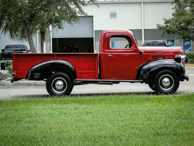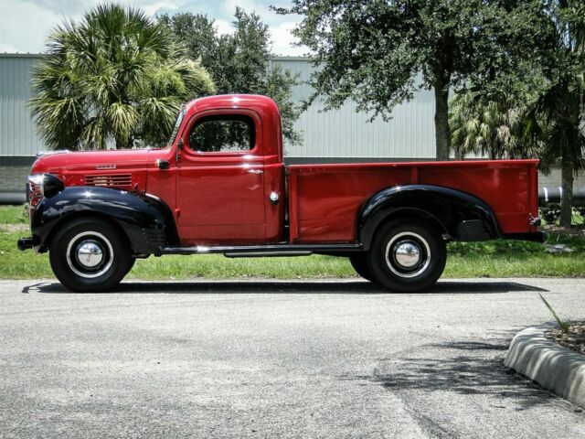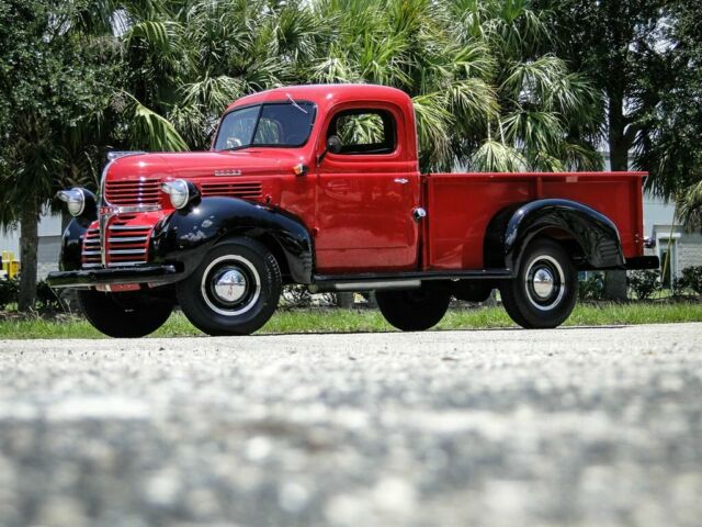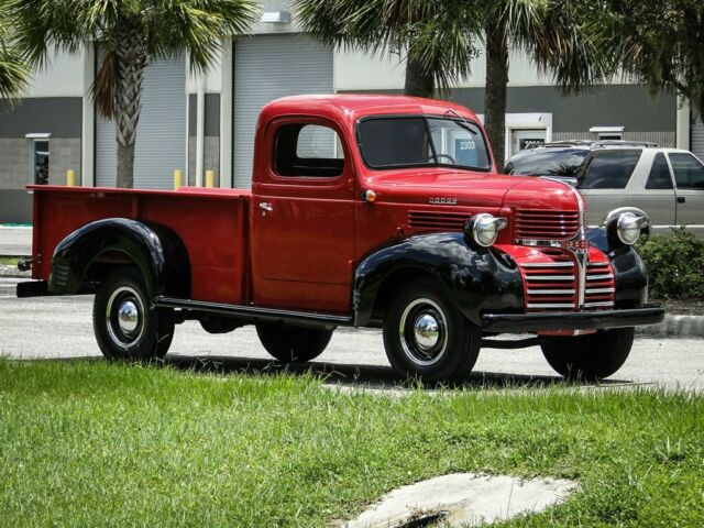What a cool and rare 1942 Dodge WD-15 pickup we have to offer. This beauty is restored and in excellent condition. The Red and Black paint scheme fits this truck very nicely and gives some insight into its original use. This was a fire truck that was converted with a normal truck bed and restored for more civilian use. The Uniroyal radial tires wrap black steel wheel with chrome center caps with red Dodge script. The wood in the bed is new and looks beautiful. It is oak that has been stained in a beautiful rich color that really makes the woodgrain shine through. The interior is also restored with a brown vinyl bench seat, shifter on the floor, vinyl floormat and a new VDO speedometer. Under the hood rests the 217 CID flathead 6-cylinder engine rated at 85 horsepower backed by a 3-speed manual transmission that runs out great! This beauty is ready to drive and cruise and would be the envy of any local parade or show. Dodge marketed these trucks as “Job-Rated†and they were the first to be produced in the Warren plant. They were the first to offer factory 4-wheel drive pickups and diesel engines. These trucks were built from 1939-1947 and were used for military vehicles as well. The WD is a ¾ ton truck that was built for work! If you’re looking to stand out from the crowd, this is a great way to do it. For additional information on this and our other classic and collectible cars for sale, please visit . For assistance please call the office at 855-472-2982, text our cell phones at 855-472-2982, or email us at . We are located between Tampa and Sarasota. We are 90 minutes from Orlando and Fort Myers.