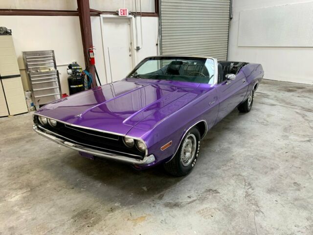 1970 Challenger Convertible, Numbers Matching 318 V8, Numbers Matching Automatic Transmission, Power Steering, Power Brakes, Power Top, Bucket Seats with Center Console, Slapstick Automatic Shifter, Original Plum Crazy Paint Code, Believed to be 58K original miles (title reads exempt due to age). This is a rare opportunity to own a very original Challenger Convertible in the highly sought after Plum Crazy color! This car shows beautifully and runs and drives as good as it looks! This car will not disappoint!