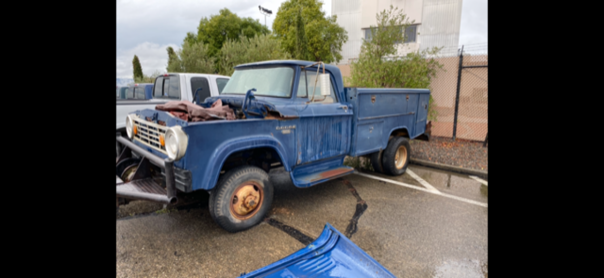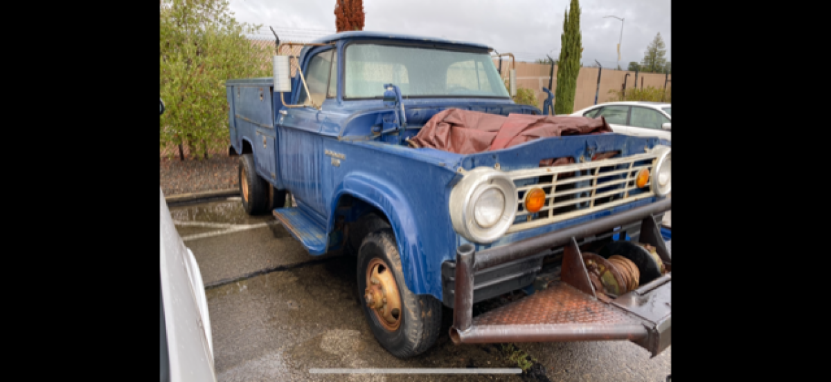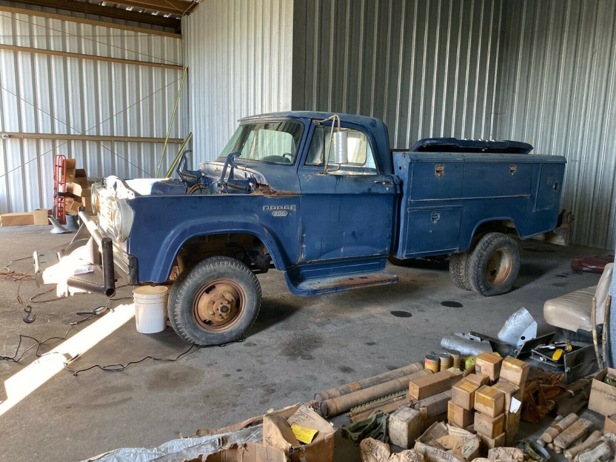 1966 Dodge W300 with utility box bed and winch. No engine, transmission or transfer case. Great potential for a Cummins diesel mod !! Garwood 2U512 PTO type winch and winch bumper as seen in the photos. The PTO and drive shaft are missing. Brakes and tires are good. I drove it about 30 days ago and the running gear and brakes worked fine. The glass is all good. The door glass rolls up and down. The only bad rust is below the left corner of the windshield. You can see it in the photos. No title. Will have a bill of sale only. The hood was damaged not long ago and has quite a few dents. The truck is located in Santa Rosa, CA at the airport. I will help load it onto your trailer. If you want more photos just ask and I will send them to you. |