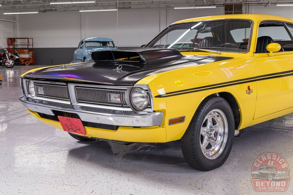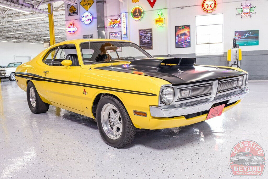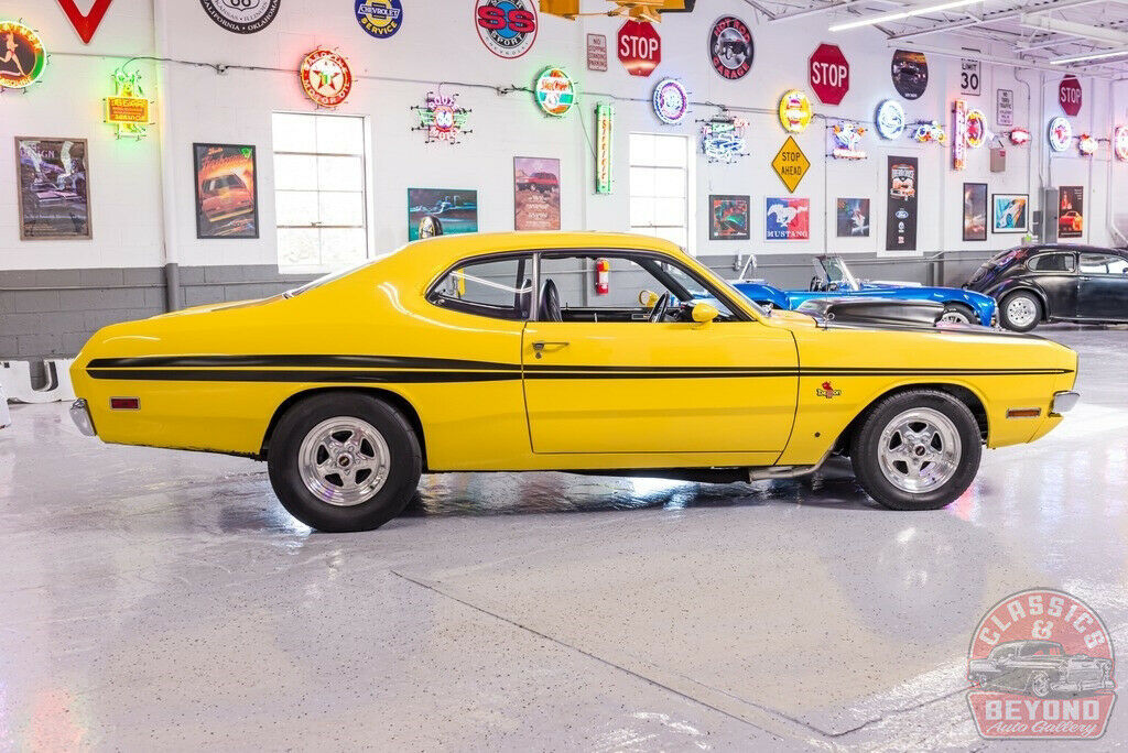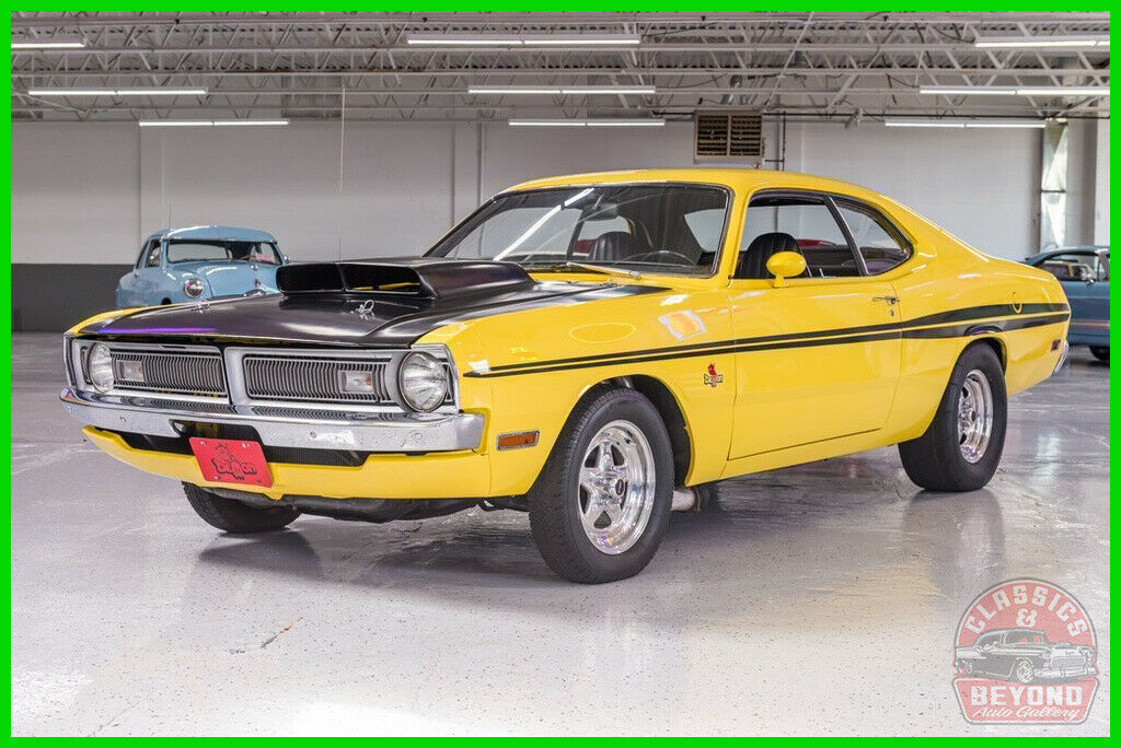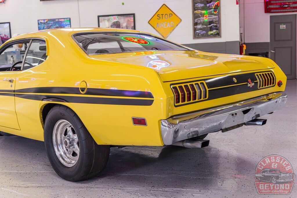 Please visit www.ClassicsBeyond.com to view all the pictures of this vehicle. 1972 Dodge Dart DusterAre you looking for a drag racing car? This 1972 Dodge Dart Duster may be what you were looking for. If you are a Dodge fan then you already know how impressive a 440 engine can be at the track. Add a reliable 727 3-speed automatic transmission and 4.11 gear ratio and you have a winning combination. A true competitorSome prefer Mustangs, others prefer Camaros or Chevelles. But a true connoisseur of Chrysler engines knows that a 440 can easily defeat any Ford or Chevy engine. Anytime. The awesome 440 cu in (7.2 L) engine produced from 1965 to 1978 had a gross power of 335 bhp at 4400 rpm (225 hp net). Not bad for a ‘stock’ engine right? Now imagine the power gains of an engine like that when properly modified. Fortunately, that’s exactly the case of this 1972 Dodge Dart Duster. Ready for actionOpening the hood of this Dodge Dart is a real pleasure. You will find plenty of goodies already installed. Washable high-flow performance air filter. Competition exhaust headers. High energy MSD ignition system. High-performance spark plug wires. It even has a competition fuel pressure regulator installed. However, such an incredible amount of power and torque would be worthless without proper traction. Fortunately, this 1972 Dodge Dart Duster comes ready with a set of Thompson drag tires, a 727 automatic transmission and a 4.11 differential. As you enter the cabin you will notice a prominent pro-comp tachometer with quick-lite and a B&M shifter. The condition of the dashboard, upholstery, and headliner is fair at most but that is compensated by a great professional-grade seatbelt system. Looking great at the trackNobody wants to beat competitors on an ugly car. This 1972 Dodge Dart Duster has a great paint job with a classic combination of yellow with black stripes. The front grille is in good condition as well as the hood scoop. Add a dual-pipe exhaust system and the aggressive look of this “Demon†is complete. Ready for a ¼ mile of fun? This 1972 Dodge Dart Duster won’t let you down. |