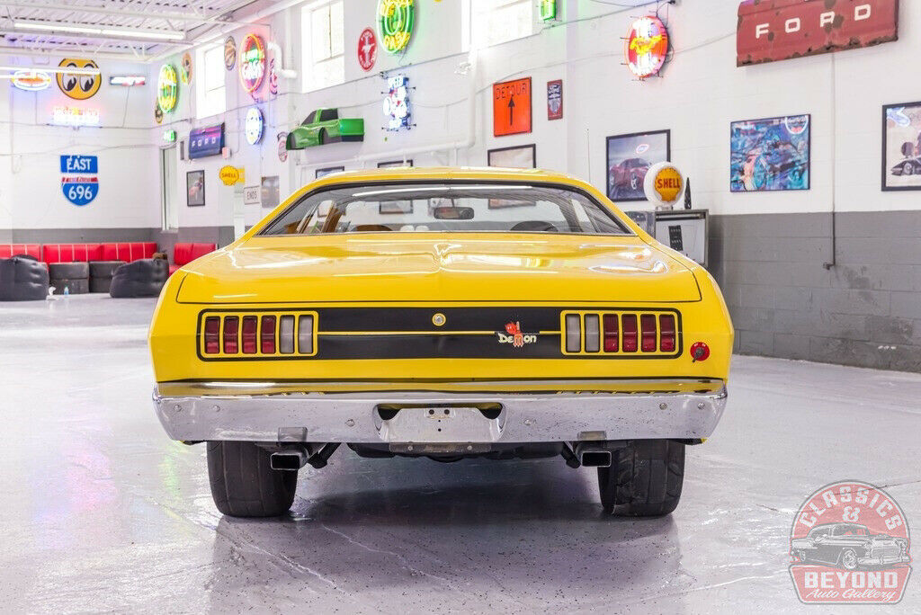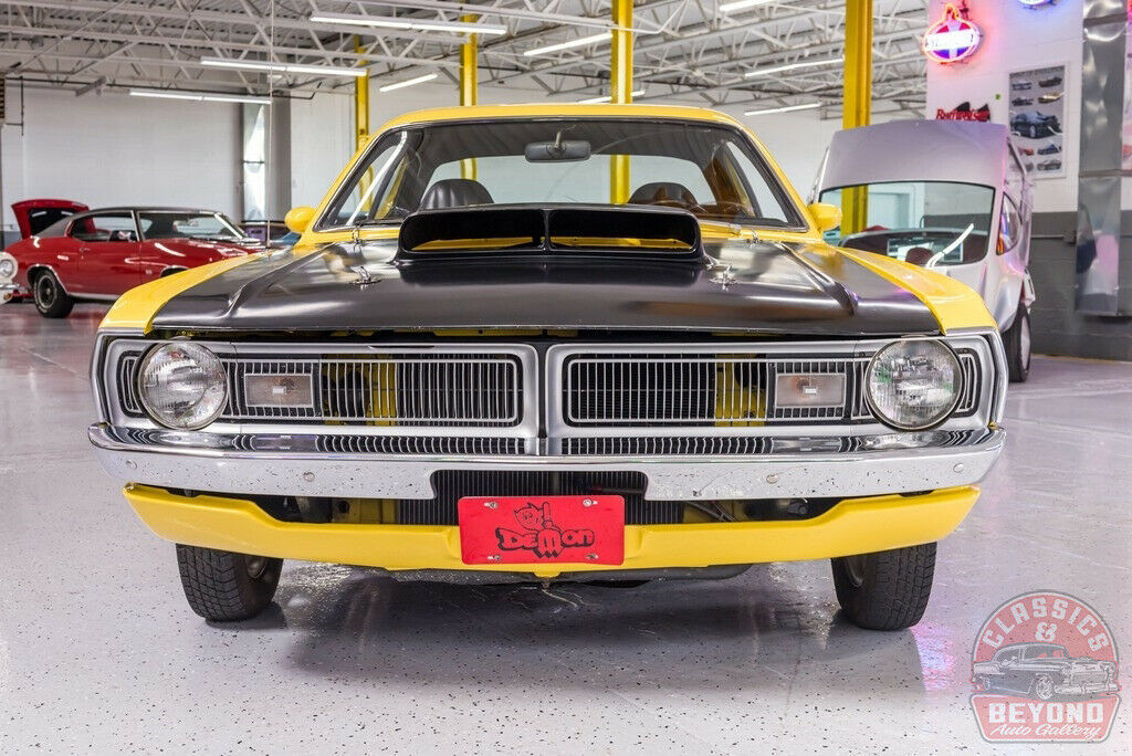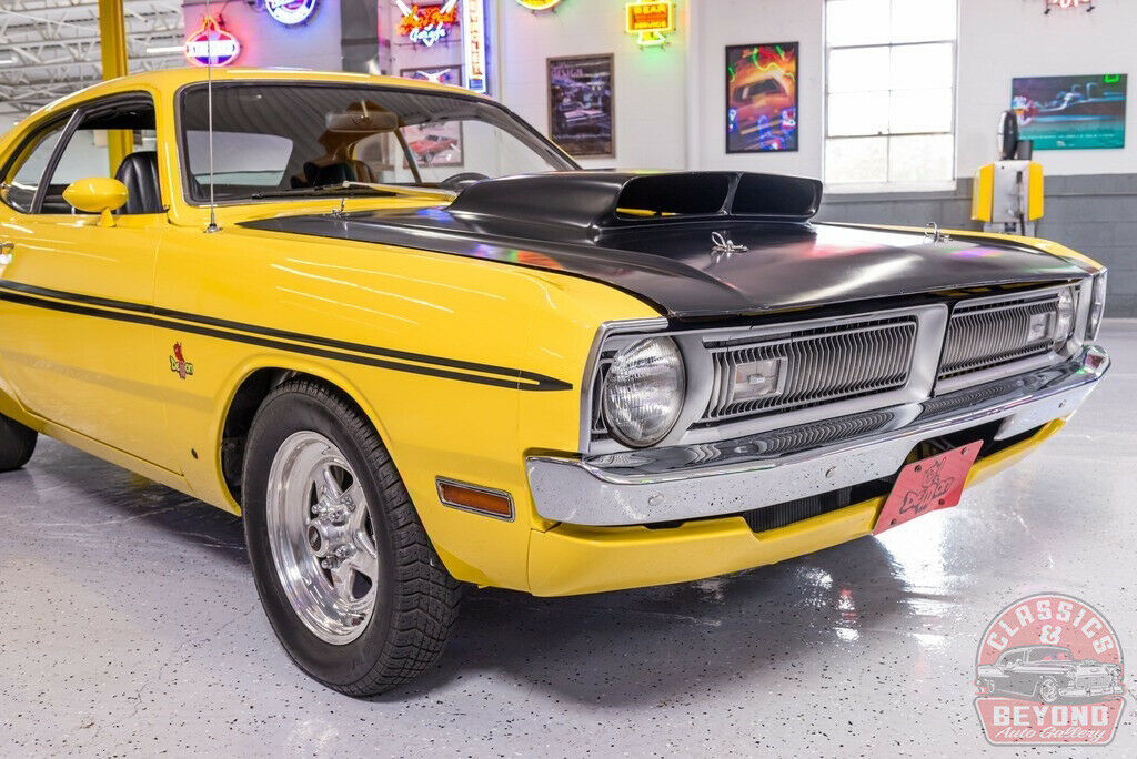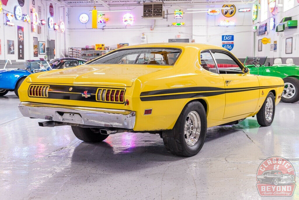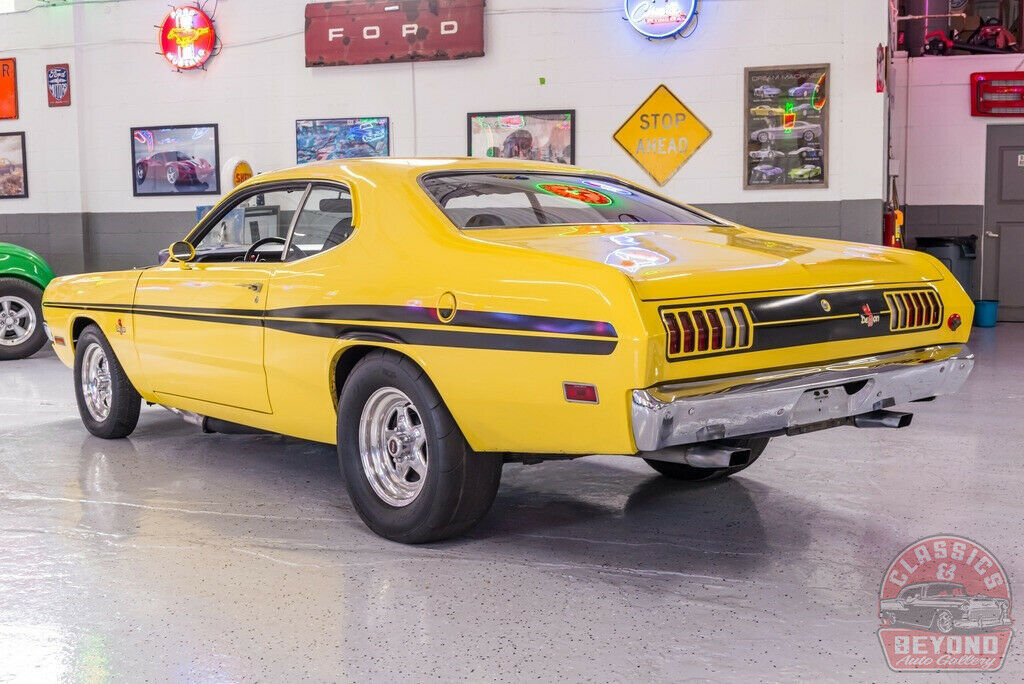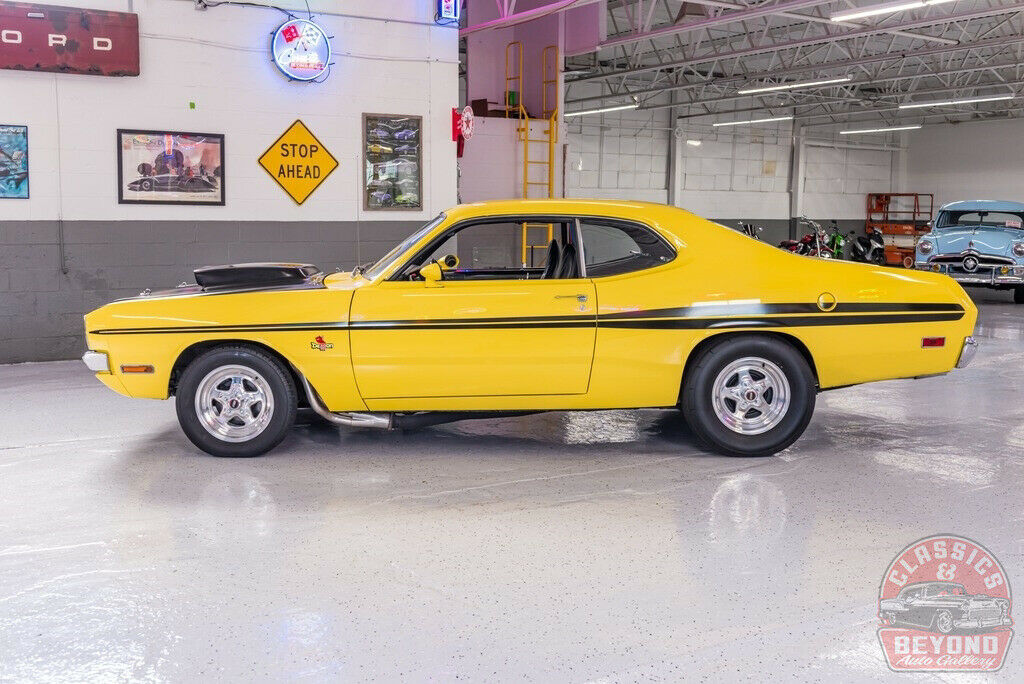 Please visit www.ClassicsBeyond.com to view all the pictures of this vehicle. 1972 Dodge Dart DusterAre you looking for a drag racing car? This 1972 Dodge Dart Duster may be what you were looking for. If you are a Dodge fan then you already know how impressive a 440 engine can be at the track. Add a reliable 727 3-speed automatic transmission and 4.11 gear ratio and you have a winning combination. A true competitorSome prefer Mustangs, others prefer Camaros or Chevelles. But a true connoisseur of Chrysler engines knows that a 440 can easily defeat any Ford or Chevy engine. Anytime. The awesome 440 cu in (7.2 L) engine produced from 1965 to 1978 had a gross power of 335 bhp at 4400 rpm (225 hp net). Not bad for a ‘stock’ engine right? Now imagine the power gains of an engine like that when properly modified. Fortunately, that’s exactly the case of this 1972 Dodge Dart Duster. Ready for actionOpening the hood of this Dodge Dart is a real pleasure. You will find plenty of goodies already installed. Washable high-flow performance air filter. Competition exhaust headers. High energy MSD ignition system. High-performance spark plug wires. It even has a competition fuel pressure regulator installed. However, such an incredible amount of power and torque would be worthless without proper traction. Fortunately, this 1972 Dodge Dart Duster comes ready with a set of Thompson drag tires, a 727 automatic transmission and a 4.11 differential. As you enter the cabin you will notice a prominent pro-comp tachometer with quick-lite and a B&M shifter. The condition of the dashboard, upholstery, and headliner is fair at most but that is compensated by a great professional-grade seatbelt system. Looking great at the trackNobody wants to beat competitors on an ugly car. This 1972 Dodge Dart Duster has a great paint job with a classic combination of yellow with black stripes. The front grille is in good condition as well as the hood scoop. Add a dual-pipe exhaust system and the aggressive look of this “Demon†is complete. Ready for a ¼ mile of fun? This 1972 Dodge Dart Duster won’t let you down. |