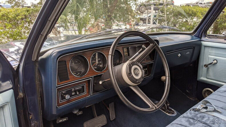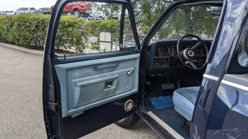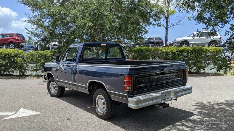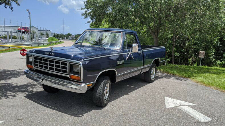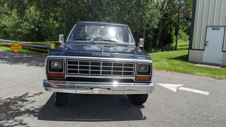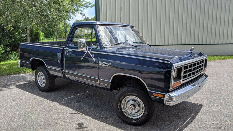 983 Dodge Power Ram Pickup Why This Car Is Special This cool 1983 Dodge Power Ram pickup we have here at Skyway Classics has just the right amount of patina and more options than you'd expect. It is a great work truck that shows only 52000.miles. Mechanical Our Ram is powered by the tried and true 318 cubic inch V8 engine including what looks like mostly factory original engine parts like the ram air cleaner assembly, water pump, radiator, hoses, belts, air conditioning, backed by a three-speed automatic transmission, two-speed transfer 4x4 case power steering and power brakes with front discs. The chassis looks lifted as it has blocks added and gives it a higher look than the stock Rams. Interior Inside is a comfy velour bench seat that takes you back to the 80s with wood-like accenting on the doors, factory sport-style steering wheel, and easy reach dash knobs and dials on the radio. The floor has blue carpeting that looks and feels good and the bed has a bedliner in it too. Exterior This 1983 Dodge Power has a blocky, muscular body that gave it an intimidating look that is balanced nicely by the dark blue paint. Ours has good chrome bumpers, trim, dual towing mirrors, Power Ram badging, and the bold Ram hood ornament that gives it a lot of presence. It has the factory polished alloy wheels with white leather Open Country Toyo All Terrain tires, a ready-to-work truck bed, tall 4x4 stance, and a tow hitch. Conclusion This 1983 Dodge Power Ram pickup we have here at Skyway Classics is the classic truck with good looks and a value price. If you're looking for a great low mileage work truck, you've found it! Please call us at 941-254-6608.