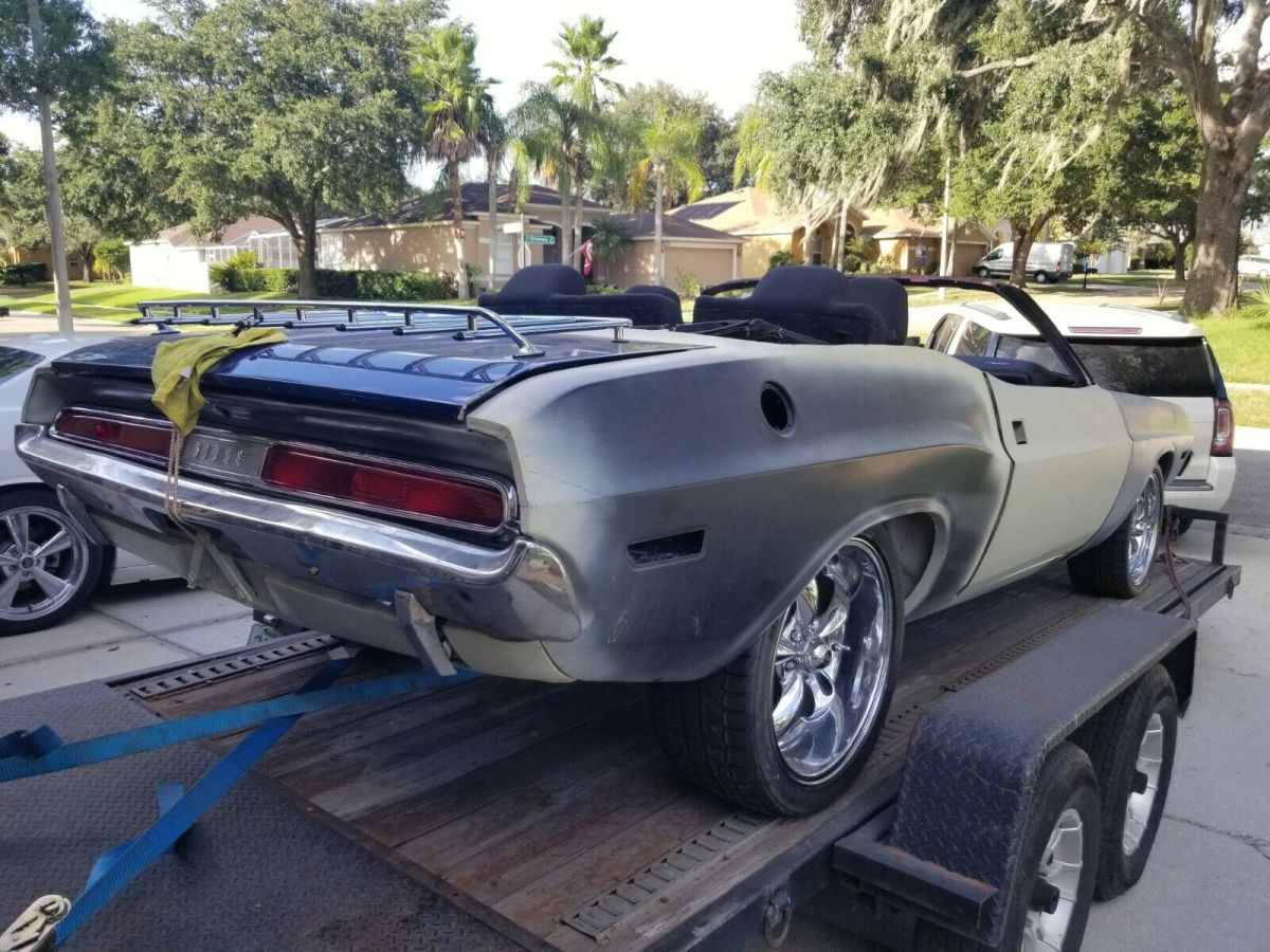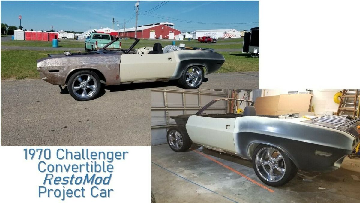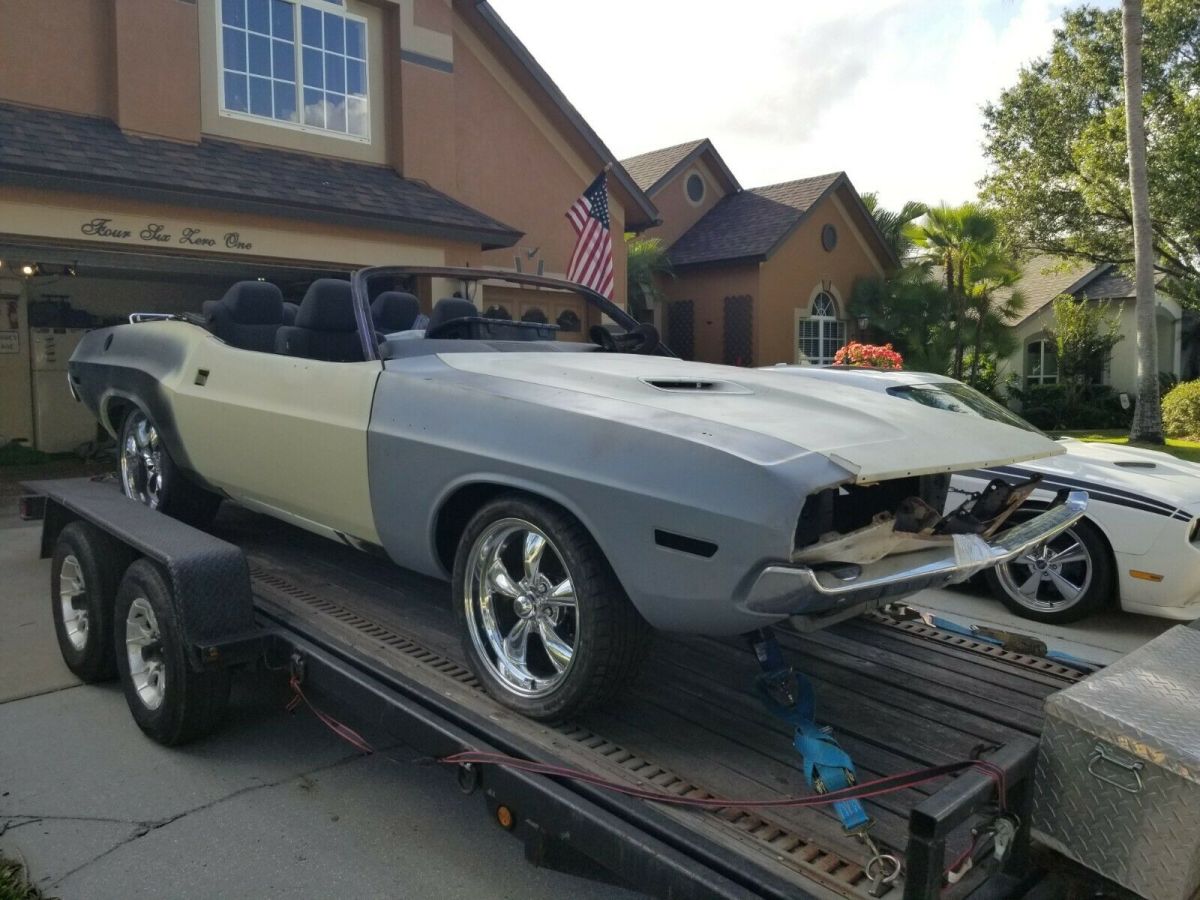Dodge Challenger Convertible restomod 2017 5.7 Hemi, Nag 1 Trans, Control Freak IFS, power rack & pinion and 4 link rear suspensions. Complete rebuilt rear end with new green bearings & 3.73 Sure Grip. Torque boxes and frame rail connectors with mini tub rear wheel wells. Convertible top frame is complete but needs restoration.Car comes with all panels & trim including RT grill, rechromed tail light housing including original lenses (no cracks or scratches). Dash has been restored including air conditioning vents, A/M - F/M bluetooth, usb upgrades. Aftermarket door power window regulators, new keys & locks through out, Front installed & rear seats from 2014 Dodge Challenger.
