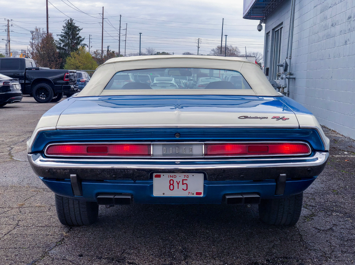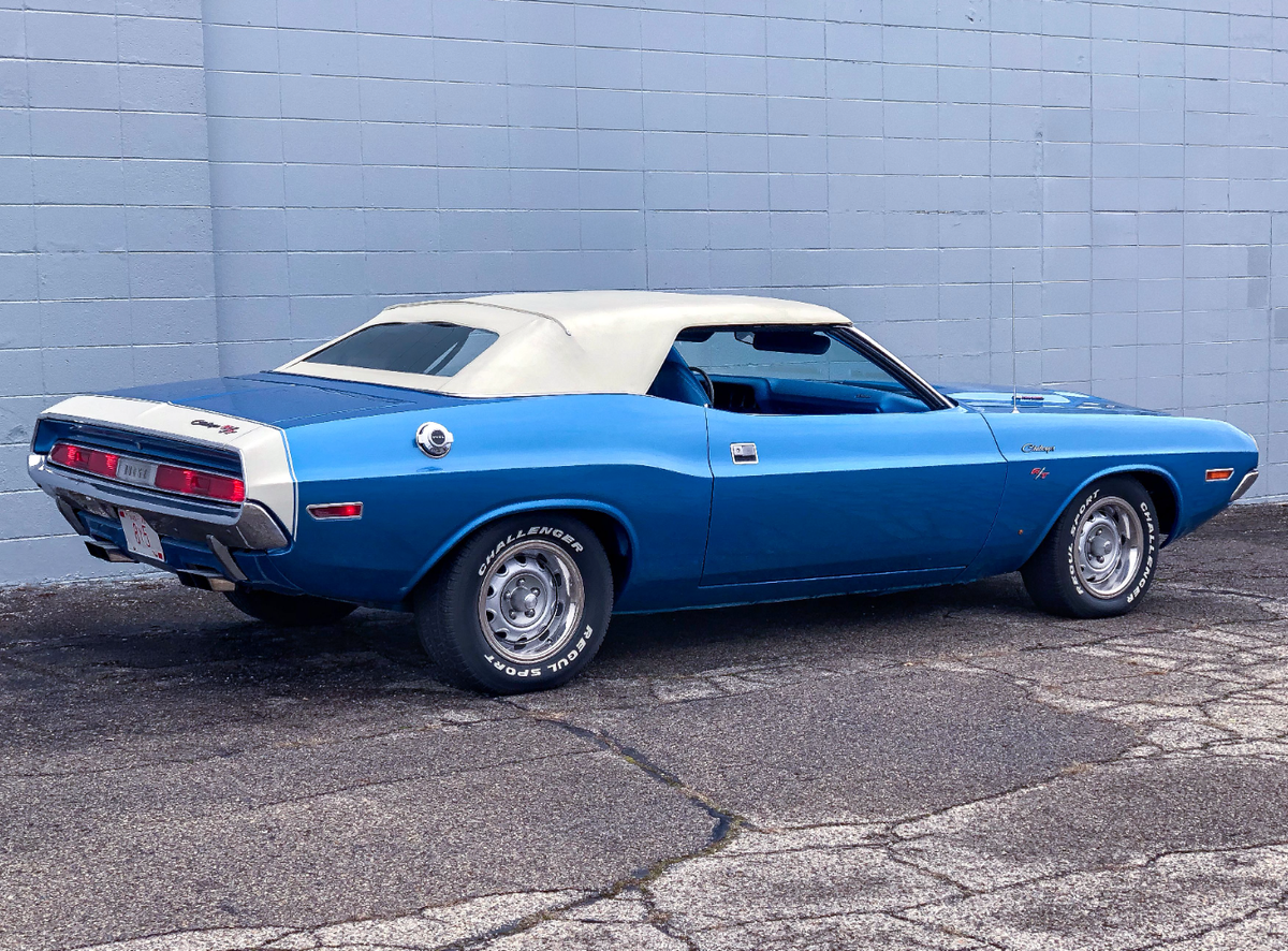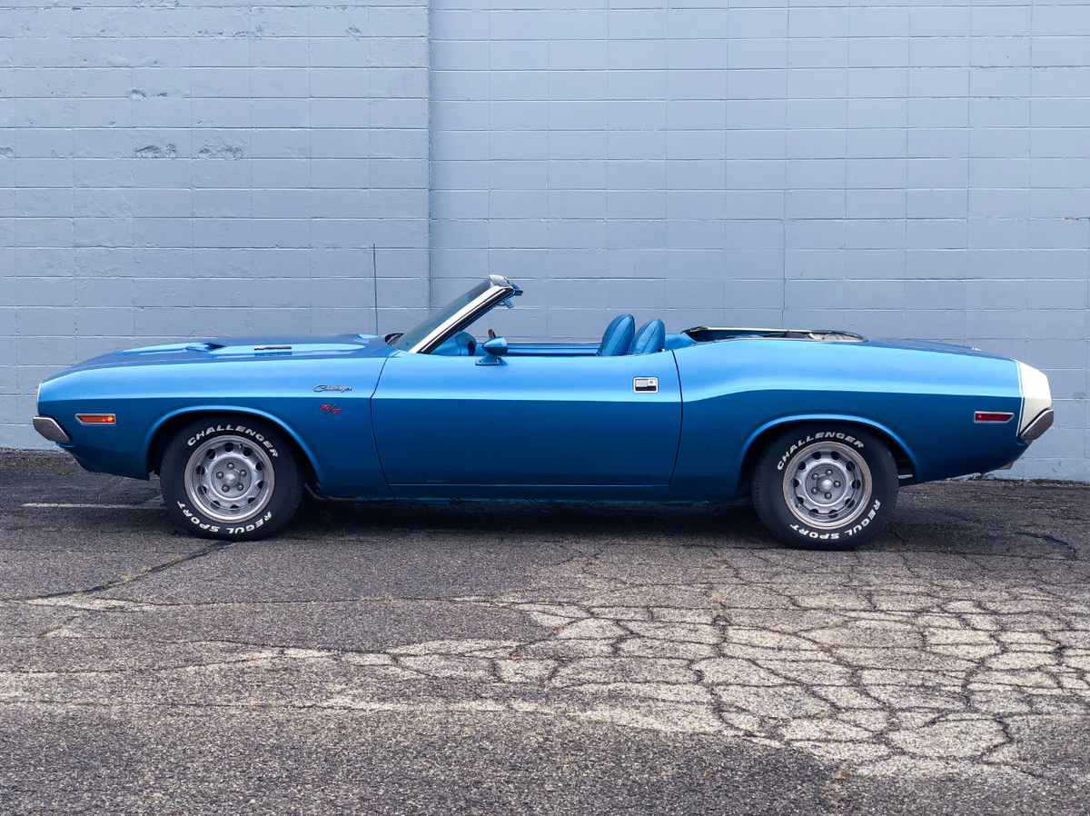 1970 Dodge Challenger Convertible – StunningEB5Blue Fire Metallic with 340ci 4-bblPower If you didn’t find what you were looking for at Mecum last month, here is a chance to acquire a classic Mopar convertible in one of the most popular color combinatins. Aniconic American muscle car that combines power, style, and rarity, this1970 Dodge Challenger Convertibleis the perfect addition to your collection. Finished inBright Blue Metallic (EB5)with awhite convertible top andwhiteBumble Beetailstripe(V3W, V9W), this classic Challenger turns heads wherever it goes. Powerful 340 V8 Engine & Performance Package Under the hood, this Challenger is equipped with the legendary340 cubic inch V8 (E55), producing275 horsepowerthrough aHeavy Duty Automatic Transmission (D32). This car also includes the factoryA66 Challenger 340 Performance Package.The 1970 Dodge Challenger A66 package wasa performance upgrade that included the 340 cubic inch V8 engine, heavy-duty suspension and brakes, and a R/T-style hood.It was similar to the R/T model, but without the R/T badging.Note that I added the R/T badging after the recent touch-up repaint. The A66 packageadded extra performance features like the dual-scoop performance hood from the R/T model, improved suspension and handling, and a 26-inch radiator. Thedual exhaust (N41) with chrome tips (N42)that were part of the A66 package delivers the unmistakable muscle car sound that enthusiasts crave. Headers were added by the previous owner to bump up the horsepower even more.The A66 package was first offered in late September 1969and it was not highly advertised, so very few examples were sold, making the A66 package an uncommon choice, adding to the desirability of this Challenger. Classic Muscle Car Styling & Interior Features Step inside, and you'll find a well-preserved interior featuringblue high-trim vinyl bucket seats (H6B6), acenter console with a woodgrain panel (C16), and full door panels (000) that enhance the car’s vintage appeal.The interior has been restored with a new dash pad, new seat covers and new carpet.The driver gets the convenience of aleft-hand remote racing mirror (G33), and the car is equipped withthe rarefactory air conditioning (H51)in a convertible. Convertible Enjoyment with Power Top Nothing beats cruising in a classic muscle car with the top down, and this Challenger makes it easy with apower-operated convertible top (P37). The white top beautifully contrasts with the blue body, giving it an unmistakable look that stands out from the crowd. Additional Features & Factory Equipment