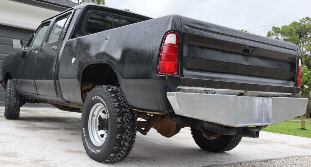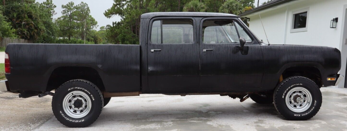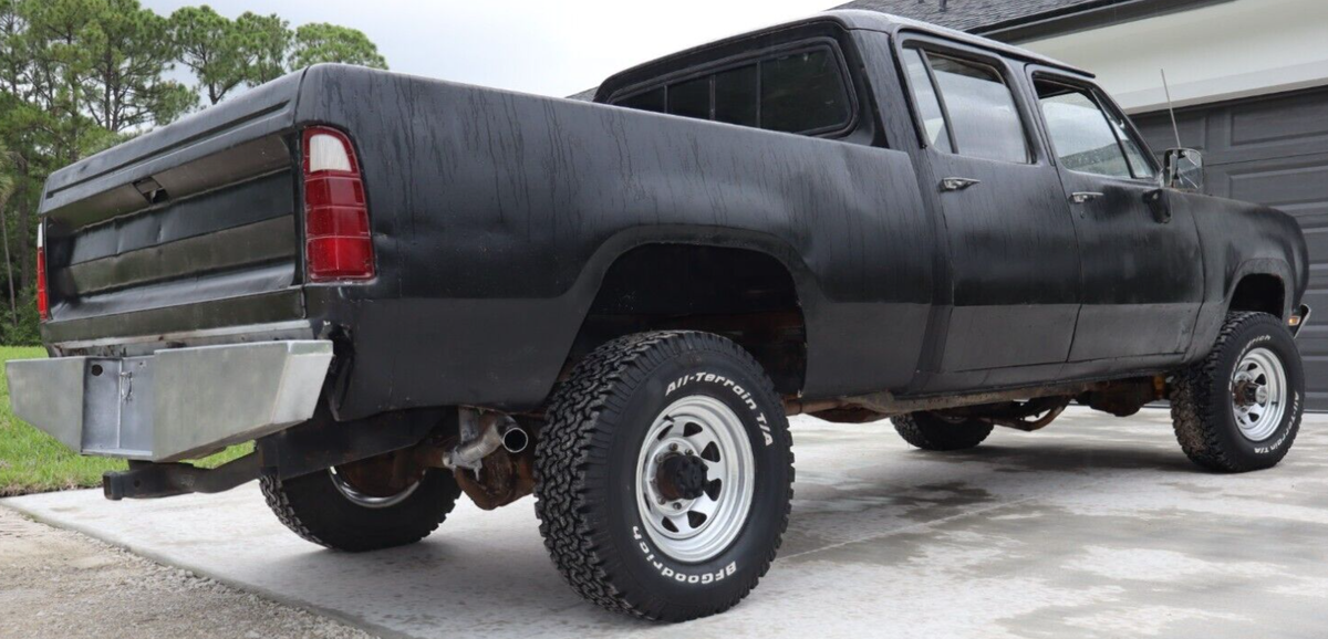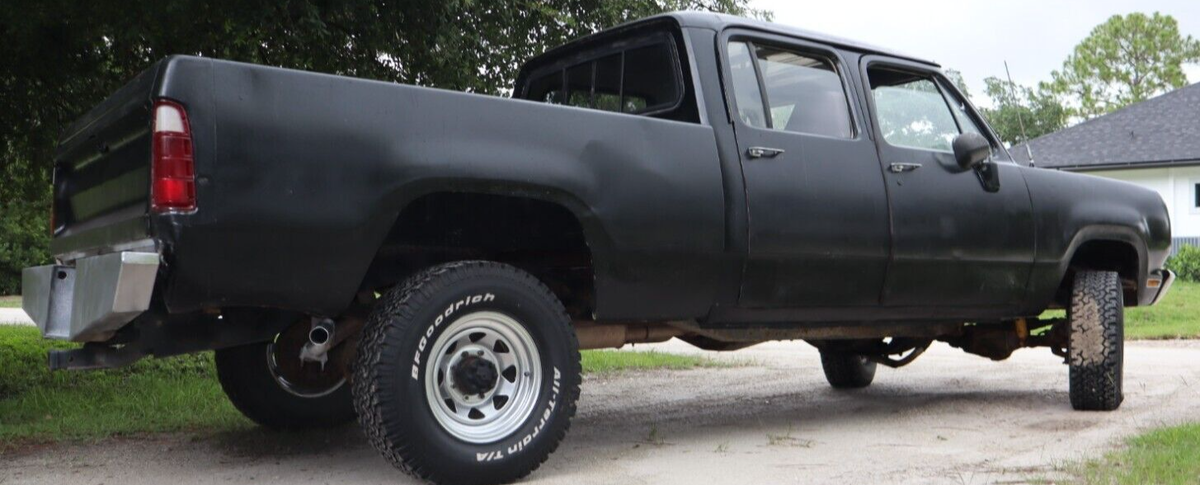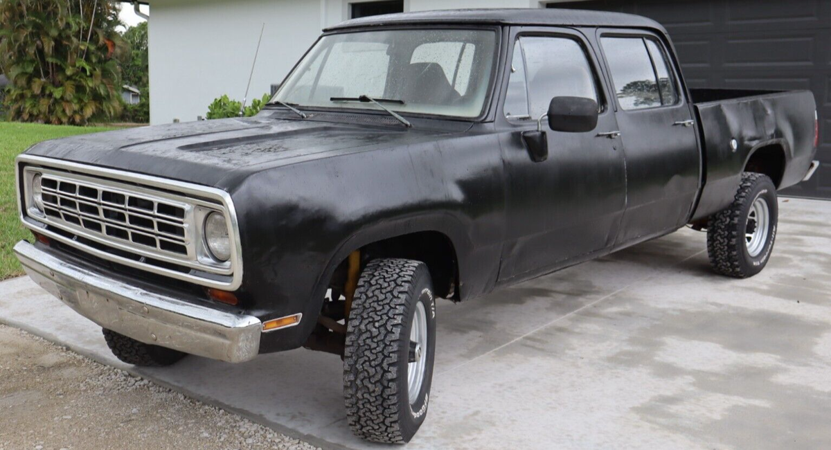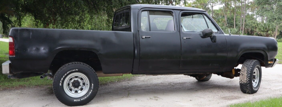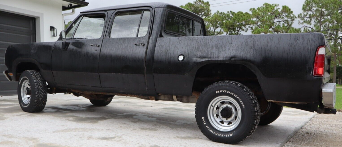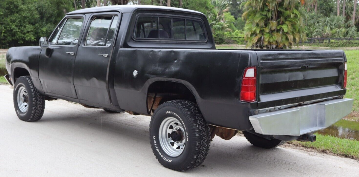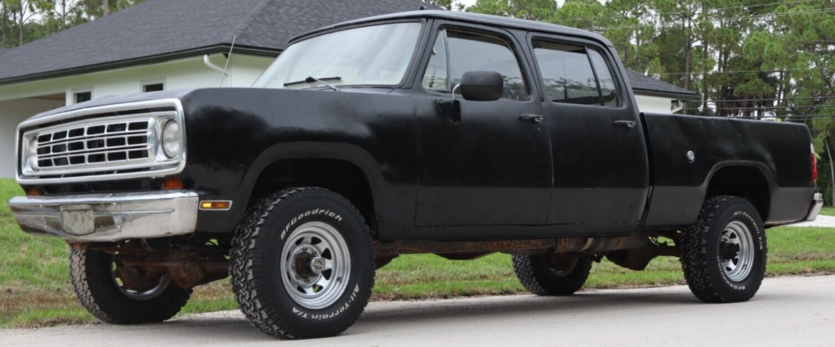 1975 Dodge W200 3/4-ton Power Wagon 4-door Crew Cab 4x4 with Manual TransmissionRare and original 1975 Dodge w200 ¾ ton Power Wagon black pickup 4 door short (6.5’) bed working 4wdRuns and drives well, is a serious off-roader and has a timeless stance with its simple yet stylish Crew Cab with Sweptline box, its compact Low-Line Extended Body also known as the dodge Maxi-wagon Sportsman design it is considered to be a perfect farm, work, family hauler, or going to town classic truck.Many detailed pictures and videos as you'll see.This W200 crew belongs to the third out of six generations of dodge pickups, W200 was produced from 1957 until 1980, with factory designation "W20" as you'll note on the original riveted data plate. This ‘75 W200 comes as it came from the factory: 4 doors, short bed with 149” wheelbase, working part-time two/four-wheel drive and 4-speed manual transmission, vent windows and working 4x4. Includes a vintage-style digital radio.This ¾ ton W200 pickup has a factory 318 cubic inch V8 (5.2L) engine, known as the Chrysler LA engine, from Chrysler's family of overhead-valve small-block 90° V-configured gas engines built between 1964 and 2003, with plenty of power and torque to the axles with 4 speed manual transmission and selectable 2wd or 4-wheel drive, two speed transfer case giving it optimum performance both on and off road, working 4x4. Today the truck starts, runs, and drives in the city and highway normally and as it always has and as it should, with the drivetrain in 2 wheel and 4 wheel drive fully operational with the MOPAR strength that has been well established in the last the last 125 years of Dodge's existence. Indeed ever since John and Horace Dodge formed Dodge Brothers in Detroit in 1900.Original crew cab pickups are increasingly rare and desirable.1975 Dodge pickup promotional video https://www.youtube.com/watch?v=WDWTAz45FHQAll original with exception of front bench seat, steering wheel, and rear diamond pattern steal tow bumper.Engine, Steering, suspension, transmission all work.Clean and clear title in hand.Some minor dents, scratches and rust starting here and there on the body, as expected on a 50 year old truckCan put to immediate use, or add to vehicle collection to increase in value over time. $500 deposit is due by PayPal within 24 hours of auction closing. Remainder of payment shall be via bank wire transfer only within 7 days, no checks of any kind (including cashier's checks or official bank checks, etc.), and no cash in-person, I do not accept caramel until all the kinks and difficulties are worked out which customer service has advised may take months. If you have any questions, I'd be glad to speak to you via eBay messaging or by phone call.This a private sale. The truck is located in my residential garage in Miami area, Florida.This one is a long-term keeper that will absolutely increase in value over time, especially as you improve it while using it. I had intended never to sell it but my situation has now changed and I must sell. Buy quality. |