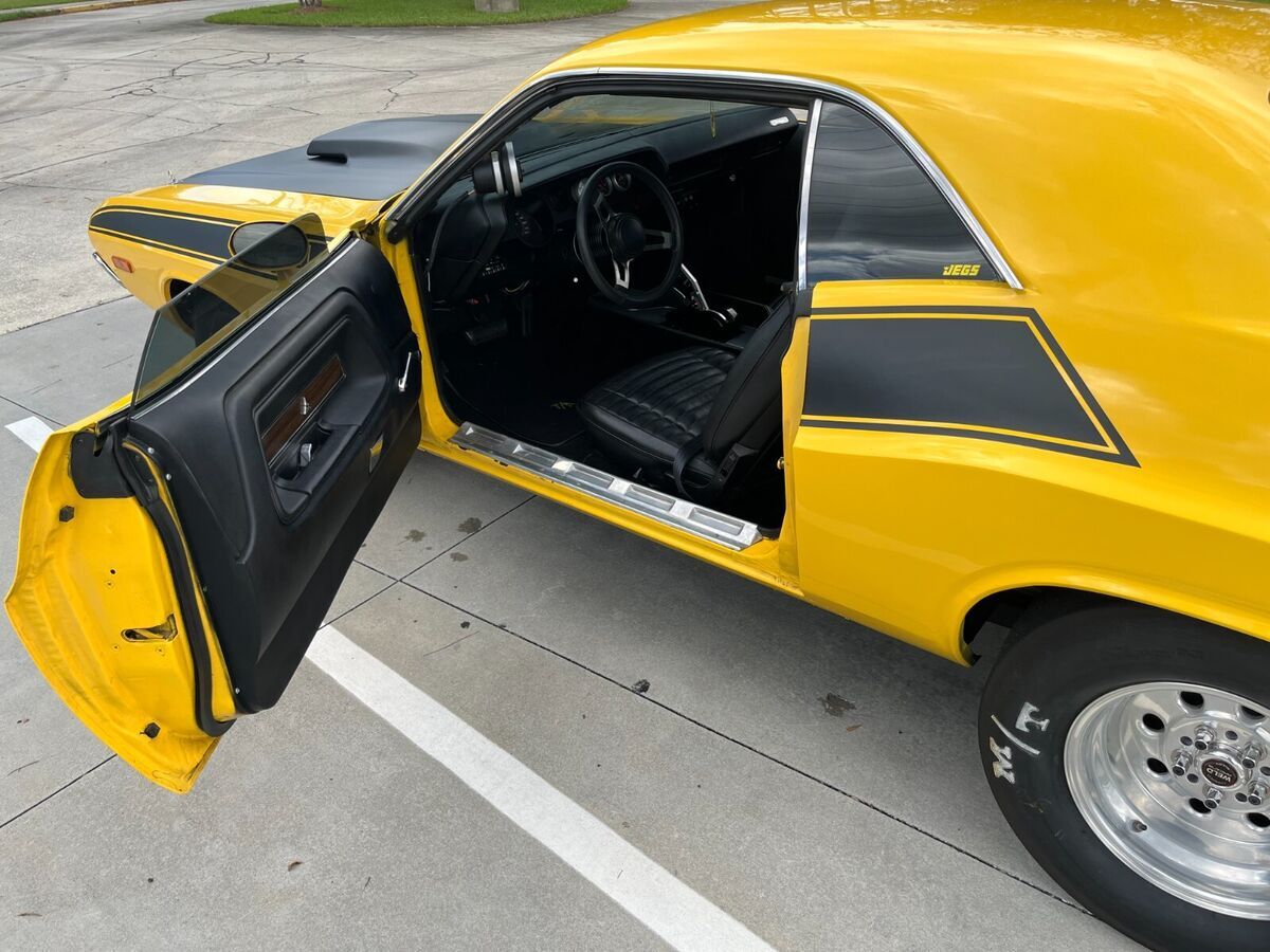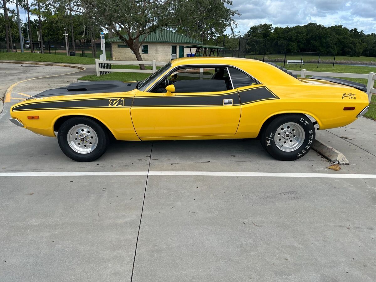 1972 PRO-STREET DODGE CHALLENGER T/A TRIBUTE CARThis Pro-Street T/A Tribute Car Has a 530 Cubic Inch Cranking out 720 Naturally Aspirated HorsepowerThis Challenger is a Great Street or Strip Machine That Has Been My Cruise Night Attention GetterIt Was a Gold Challenger Rallye Model With a 340 Engine Before Being ModifiedIt Has Been Driven Very Few Miles, Mostly To Cruise Events & Car ShowsThe Car Has Previously Spent Time on The Drag Strip But Has Not Been Down the Quarter Mile in Many Years and Never Since The Installation of The Indy Cylinder Heads RB Street Master EngineThis Car Has All The Equipment To Support Quarter Mile Passes With Endless Lists of High Performance ComponentsThe Car Runs & Drives GreatAll Parts Were Professionally Built or InstalledIt is Both a Constant Head Turner & Conversation StarterUnder The T/A Fiberglass hood is a Fabulous Indy Cylinder Head 530-CU.in. RB Big Block Engine That is Pump Gas Friendly With 10.75:1 Compression The Engine Was Dyno Tested at 720 Horsepower at 6,800 RPM & 680 lb.-ft of Torque at 5,100 RPMThe Engine Has a 12 Gallon Fuel Cell & is Also Setup for Nitromethane, With a Seperate One-Gallon Fuel Cell, Fuel Pump, Solenoids, Wiring, etc. and a Seperate Nitrous Bottle as Well But Has Not Yet Been Ran Through This Motor Yet But Is Ready To Go. With a Professionally Built 727 3-Speed Automatic Transmission, With a 3,00-RPM-Stall Torque Converter & a Manual Shift Kit, With a 4.10-Geared Dana 60 Rear Axle.B & M Magnum Pro Grip Stick With Dual Momentary 12V Switches for Line Lock/ NitrousRear Seats-Roll Bar, Rear Decking are in Great Condition and Align With the Mini-Tubbing in the RearUpgrades Include: Subframe Connectors, a Driveshaft Safety Loop, Rear Penske Coilovers-Shocks & Traction BarsThe Rear Wheelhouses Have also Been Mini-Tubbed to Make Room for the 28 x 13.5-inch Mickey Thompson E/T Street TiresCan also Fit Up To 32 x 18.5 Rear Tires, The Front Tires are Michelin P205-75R15.All of the Tires are Mounted on Classic 15-inch Weld Racing Draglite Rims.The Car also has an Aluminum Tight Ratio Manual Steering Box & Power Assisted Front Disc. Rear Drum BrakesThe Sound of This Pro-Street 530-cu.in. Engine & Race-Ready Stance of this T/A Tribute Challenger is a Dual-Purpose Street Machine with the High Performance that is Ready for the Track as Well.