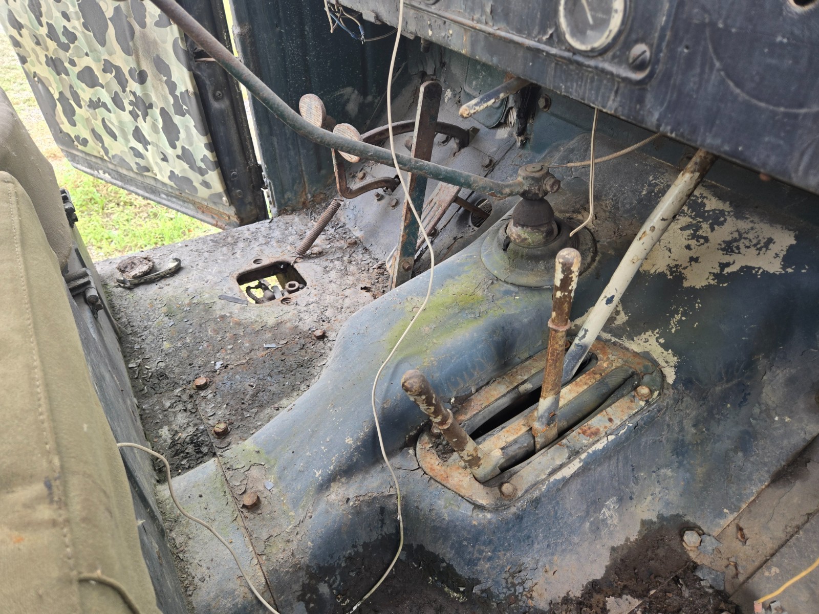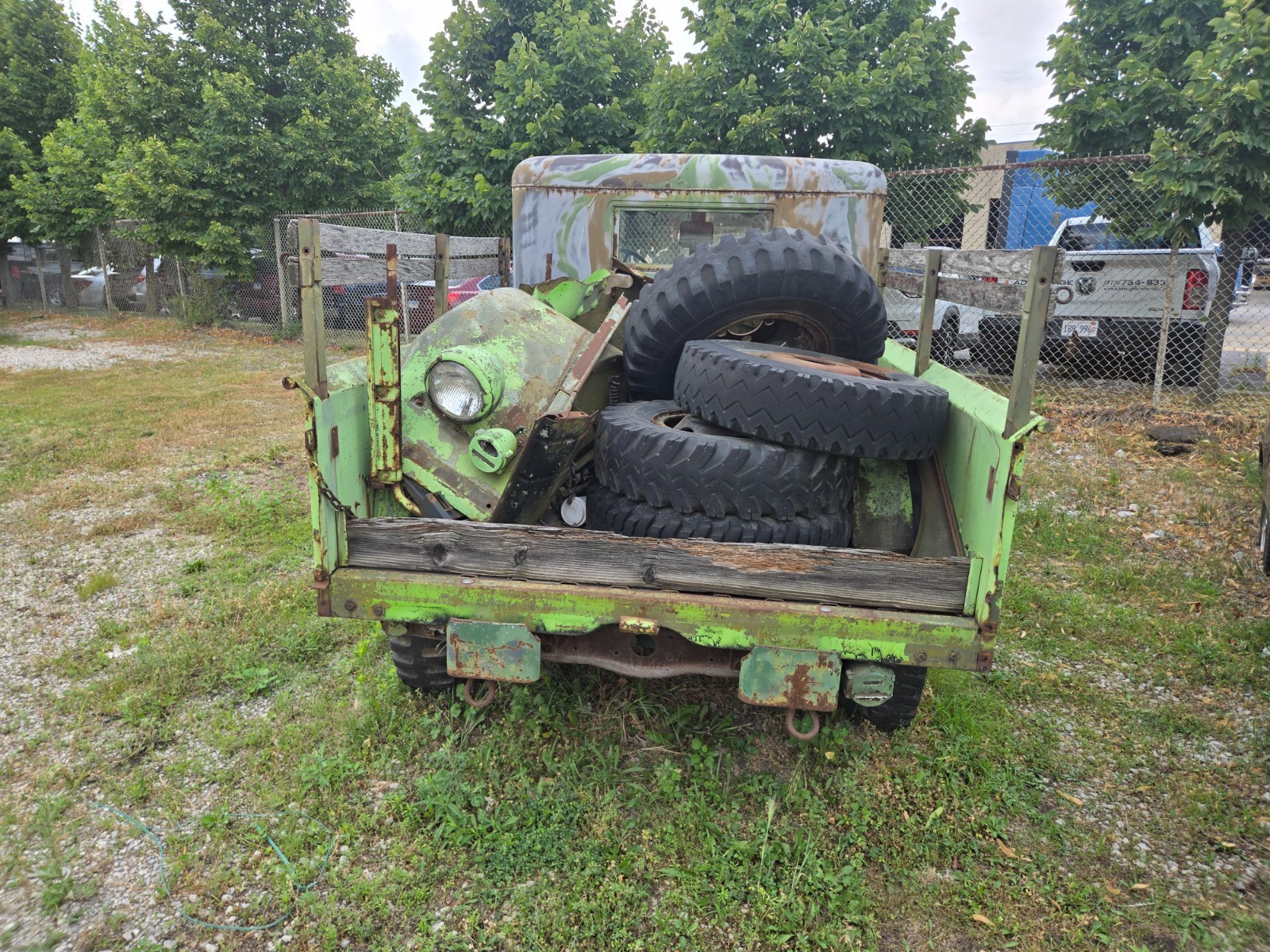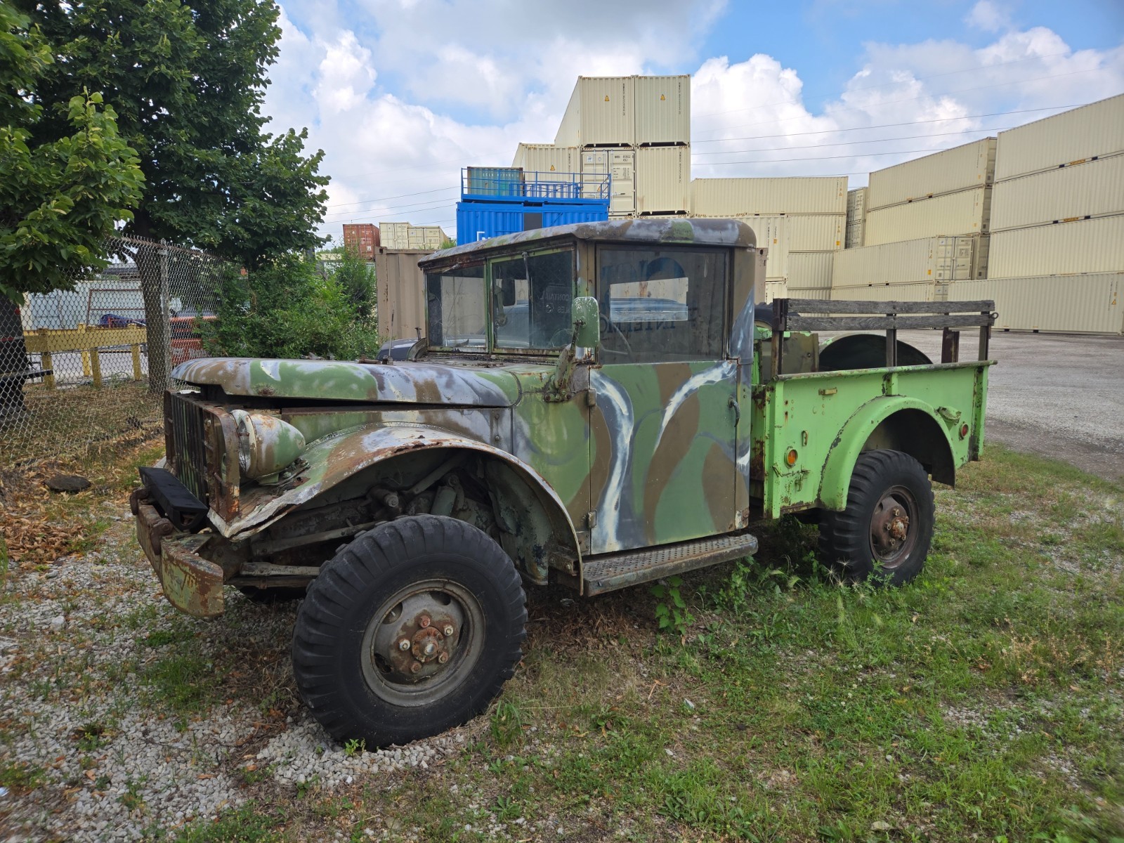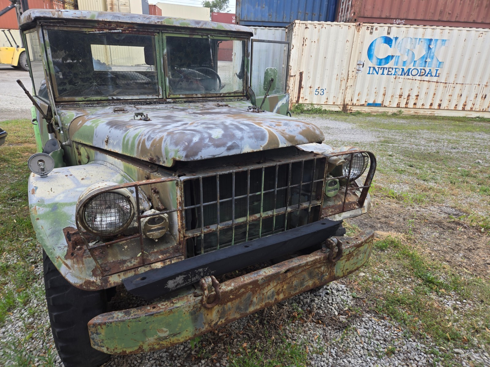 This 1953 Dodge M37 is a classic collector car featuring a tan interior and a green exterior. The vehicle ran when parked. The vehicle has a removable top half of cab. The interior is intact. There is some rust damage to fenders, but replacement fenders come with the vehicle. This standard cab pickup truck has a 6-cylinder engine, manual transmission, and 4WD drive, making it a unique and versatile vehicle for any collection. |