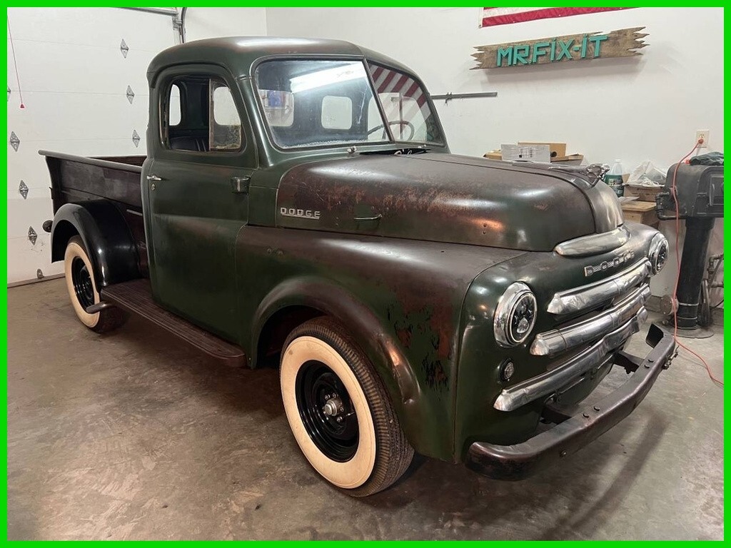 1949 Dodge B-Series Pickup This 1949 Dodge B-Series Pickup is a true classic with original paint, offering a stunning patina and character developed over 75 years of natural aging. Rescued from a field in North Central Washington, the truck was originally a two-tone model with a green cab and black bed and running boards. It was well-optioned for its time, featuring a heater, radio, and a 4-speed transmission. While the original 218 engine was seized, it has been replaced with a donor 230 engine from a military M37 Power Wagon, though not rebuilt. The truck has also undergone several upgrades, including a front disc brake conversion, new kingpins, a custom drive shaft, new brake lines, and a refurbished seat. The truck sits on new 1949 Dodge B-Series Pickup This 1949 Dodge B-Series Pickup is a true classic with original paint, offering a stunning patina and character developed over 75 years of natural aging. Rescued from a field in North Central Washington, the truck was originally a two-tone model with a green cab and black bed and running boards. It was well-optioned for its time, featuring a heater, radio, and a 4-speed transmission. While the original 218 engine was seized, it has been replaced with a donor 230 engine from a military M37 Power Wagon, though not rebuilt. The truck has also undergone several upgrades, including a front disc brake conversion, new kingpins, a custom drive shaft, new brake lines, and a refurbished seat. The truck sits on new 16-inch steel wheels wrapped in period-correct whitewall tires, and the bed has been fitted with fresh wood. Additionally, it has been converted to 12 volts, re-wired, and the heater has been updated. While the vehicle still requires some finishing touches, including interior work, new glass, weather stripping, and window installation, it comes with the rare and intact curved cab corner windows. This truck offers a great opportunity to own a beautifully restored piece of automotive history. Located inSnohomish, WA 98290 For more information, please call 833-265-6113 and mention ID91234 |