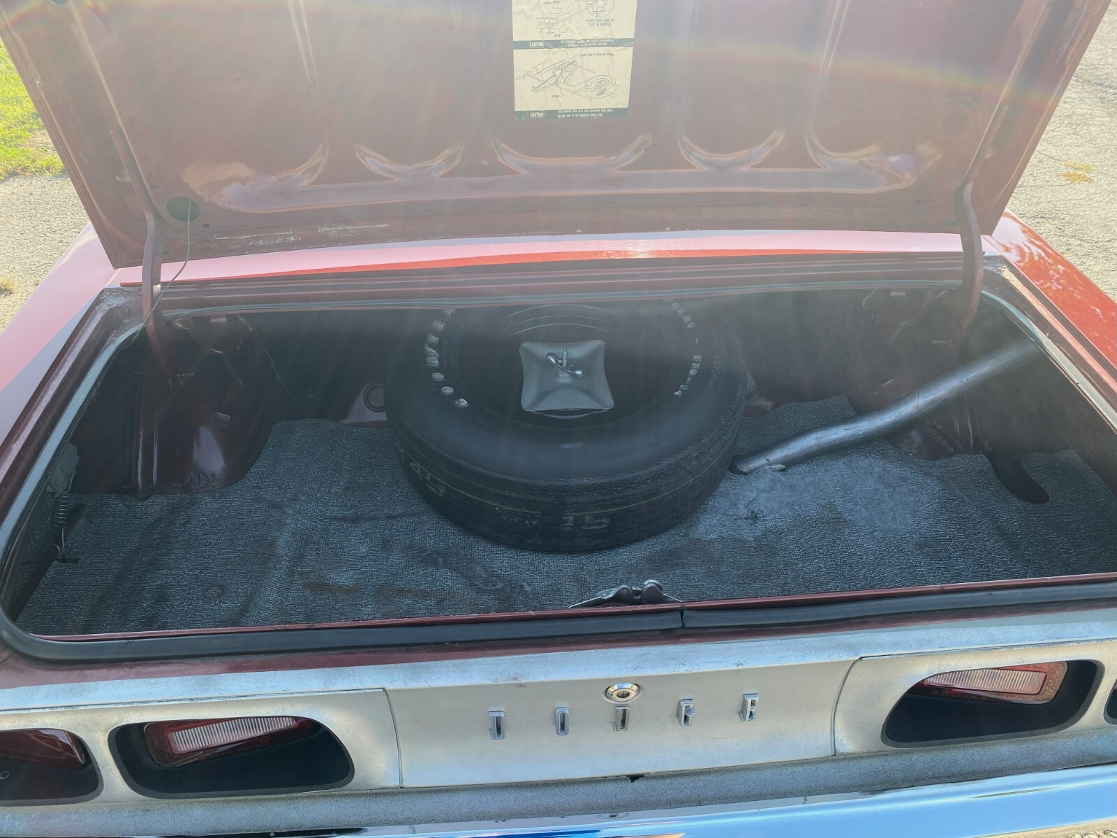 Up for auction is my 1974 Dodge Challenger with a matching-numbers 318 cubic inch engine and 3 speed automatic transmission. It has power steering, power front disc brakes, a working AM/FM radio and factory air conditioning. The car drives and shifts extremly well and the power steering is effortless. The odometer currently shows 37,711 miles to date; I do not have any paperwork to prove that it is the actual mileage. However, judging by its condition and the amount of original equipment on it, the mileage could be accurate. I found the broadcast sheet behind the back seat which will be included with the vehicle. I changed all of the fluids along with the belts and hoses. When doing so, I removed the original Mopar fan belts. The body and underside is extremely solid as you can see in the pictures and appear to retain the original undercoating. It has been repainted once in its original factory color, Burnished Red Metallic (GE7). The white vinyl top is in excellent condition. It runs and drives very well and has a clean Missouri title in my name. I am not a Mopar expert, but when I decode the trim tag, everything seems to be on the car as stated except for the white accent stripe which may not have been put back on after the repaint. I do have some additional items that will come with the car such as: fitted car cover, the original fan belts, the original bumper guards and hardware (which are in great shape), broadcast sheet and some other misc literature. These are the only known issues that the car has. The air conditioning does not work, when I jump the low-pressure switch the pump kicks in but does not get cold. I assume it needs a charge. The oil pan has a small leak while driving, I have not had to add oil since I have had it. The Challenger emblem on the passenger side quarter panel came off. I have the emblem to include with the car but it will need to be put back on with new double sided tape. The previous owner had the car since 2004 and only put a few hundred miles on it. I have only owned the car for 6 months and do not know much else than what has been stated above. Please review all photos for an accurate representation of the car's condition and feel free to ask any questions you may have. If you are the winning bidder please be prepared to buy. If you have zero feedback, contact me before bidding.Additional information, photos, or specific detail requests can be provided upon request (I have a short walk around video i can send through Ebay messenger). I am not a dealer or collector, so this vehicle is being sold as is with no warranty. I do not offer shipping but will work with your shipping company if need be. Thank you! |