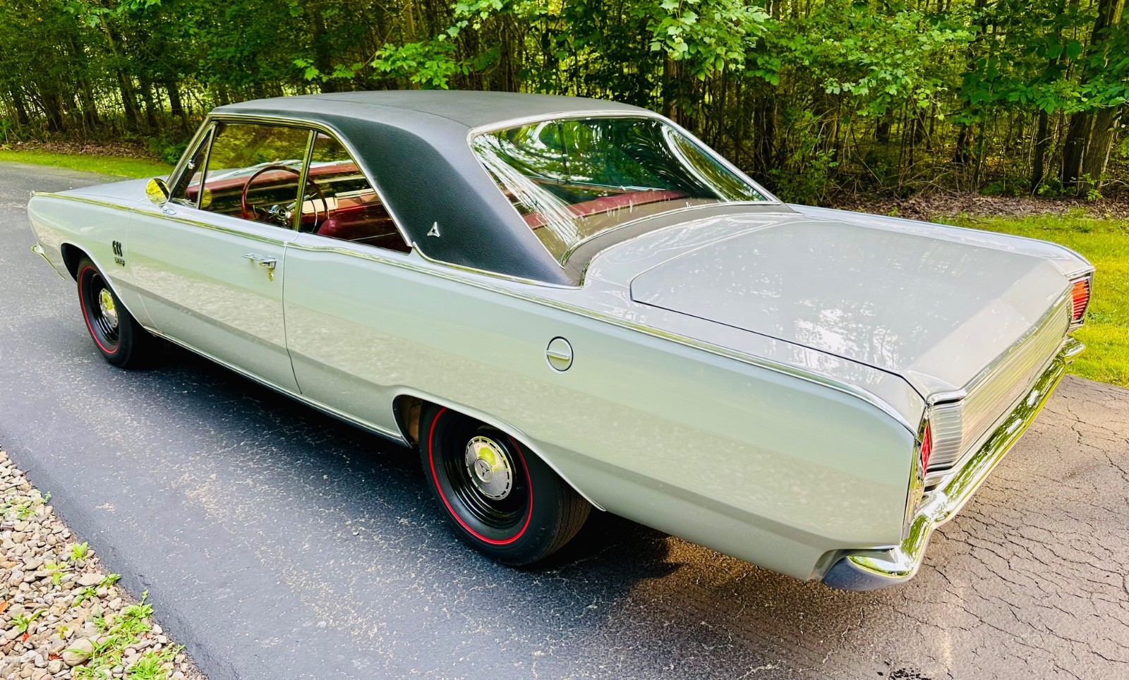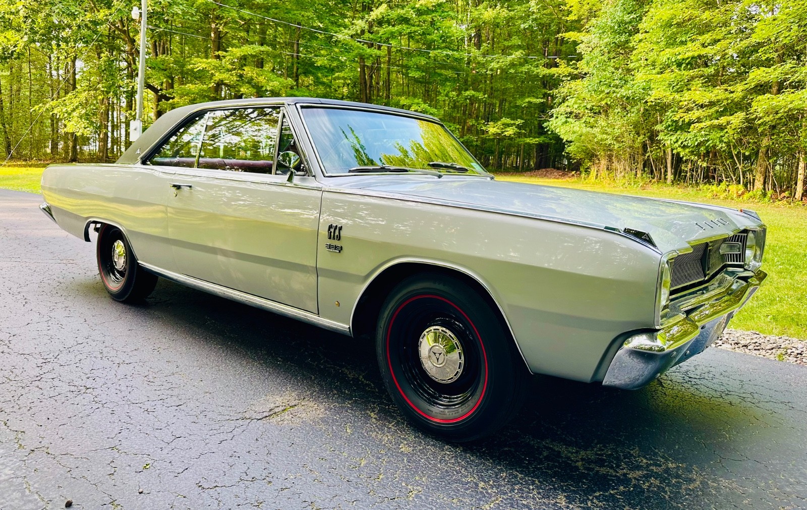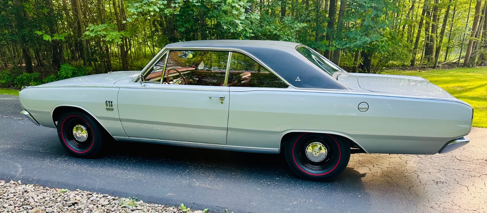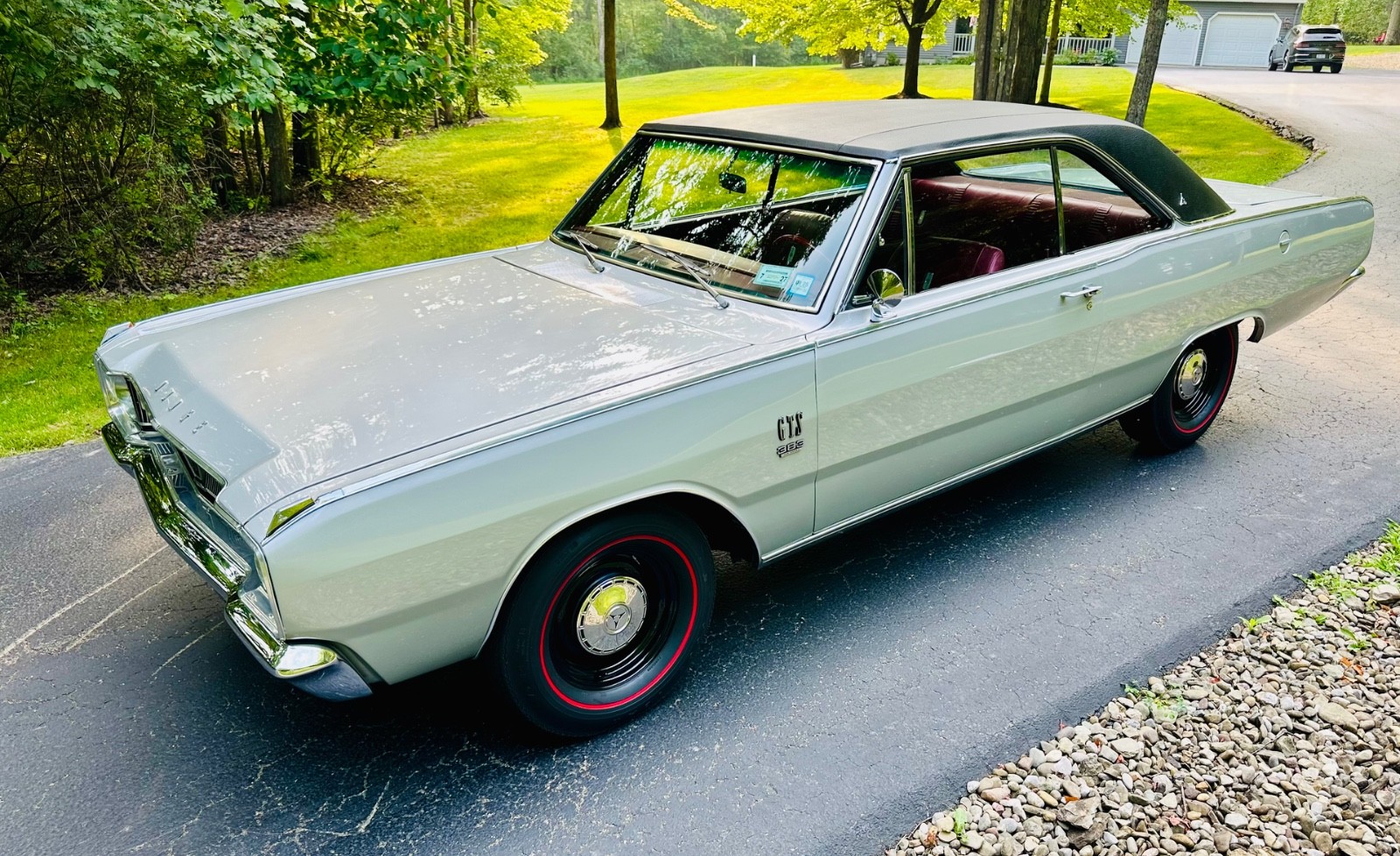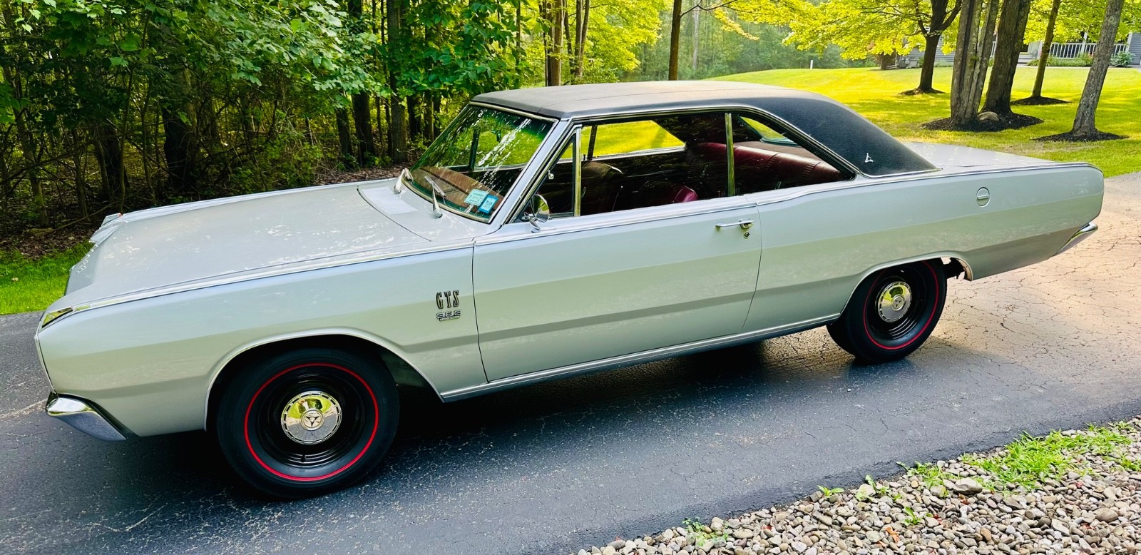 This is my 1967 Dodge Dart GTS factory NUMBERS MATCHING big block four barrel car, Torqueflight 727 automatic, 8.75 rear differential, 3.23 rear gear ratio, silver metallic, red interior, everything mint. 1 of only 228 Big Block 383 Dart's in 1967 with an automatic transmission. VERY RARE DART. Rotisserie restored to factory build card which is included. Black vinyl top is excellent, red interior is nearly perfect, paint is laser straight and is nearly 10 out of 10. Runs and drives as good as it looks, under the hood looks like the day it was made, everything correct down to the hoses, clamps, belts, and fender tag. Full originality right down to the red line bias ply tires and dog dish hubcaps. Underneath and under the trunk mat is better than new. All the stainless and chrome is spotless. Tons of documentation and receipts including original window sticker. Comes with a car show large printed display. Only blemishes is that the factory tach is currently not working and there is a small touch up on the cowl that is nearly invisible. Shipping can be arranged. Rare and collectible Dart, one of the nicest in existence. See complete video here:https://youtu.be/24stcB2P1YA