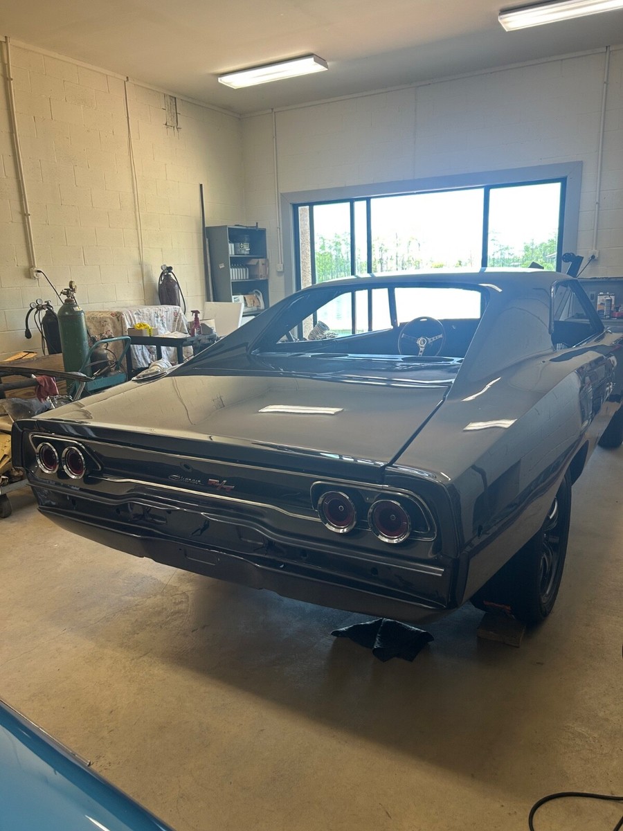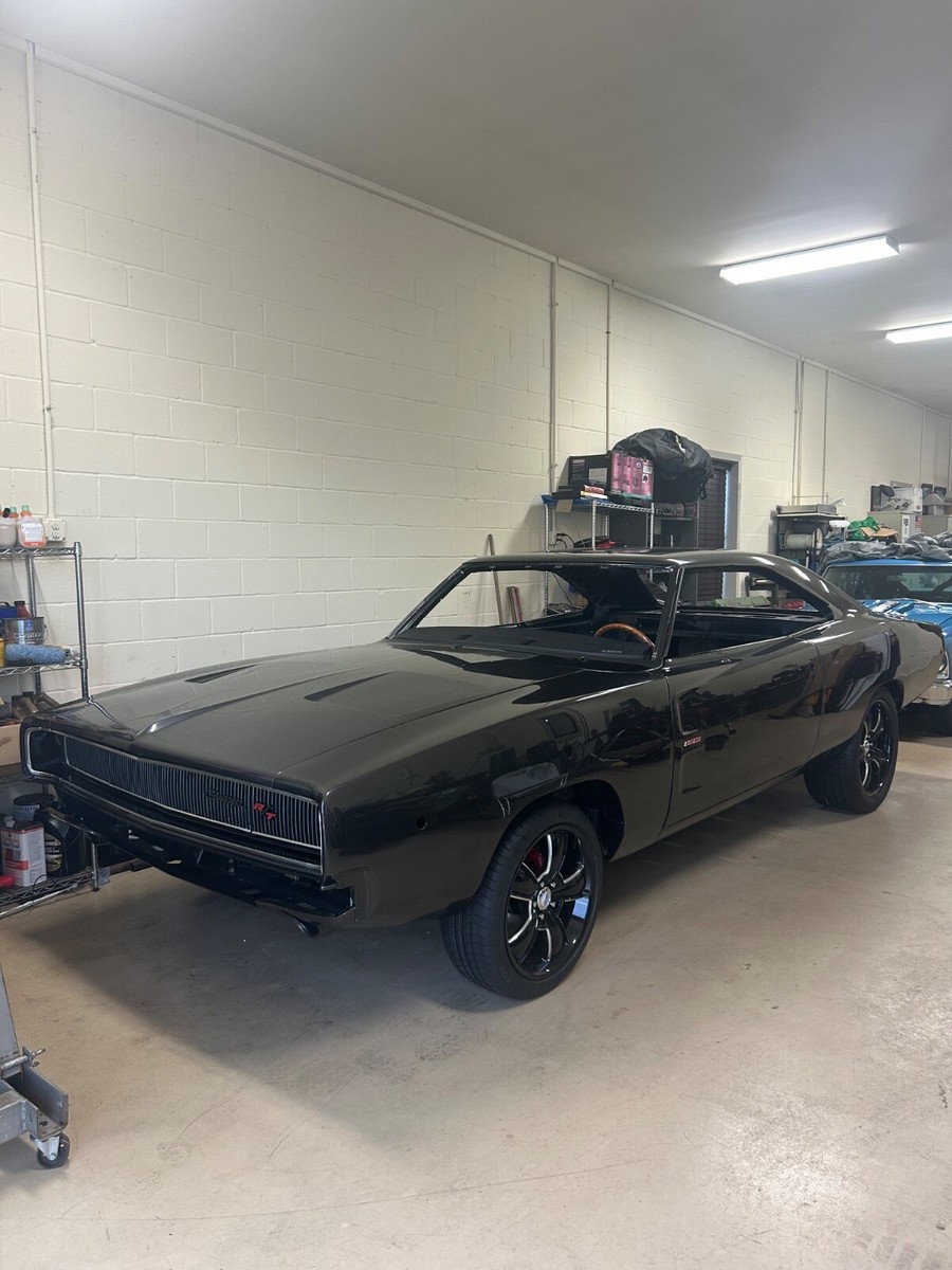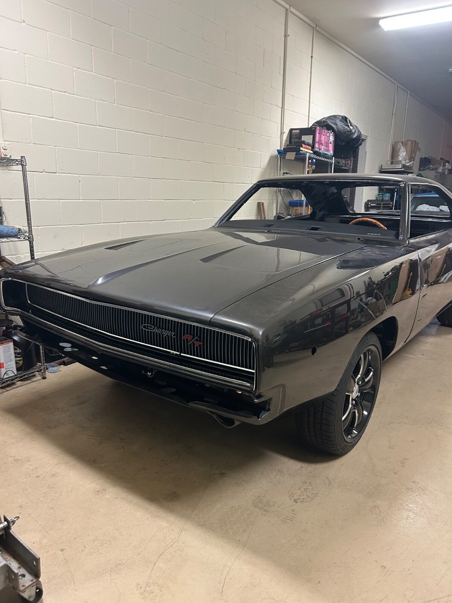 1968 Dodge Charger completely disassembled new metal new paint Granite Crystal QA1 K member tubular a arms adjustable coil overs Triangular 4link rear. 4 wheel disc Brakes 8.8 rear axle 3.73 positive traction 4 Cragar wheels rear 20x10 315/35/20 front 18x8 225/45/18 all new weather striping comes with original black interior with buddy seat I have 95 percent of the car I have all the glass except a windshield, lots of new parts fresh 727 Torqueflite transmission with HD hemi band, Keith BlackAll Aluminum original 426 hemi, K B heads all new valves & spring ready to go. new 4340 4.5 Callies crankshaft, new k steel rods. new upper valve train valve covers will sell less motor and transmission . If you want it less motor and transmission make an offer in offer notes say offer is less motor and transmission. look at all pictures call me ask questions leave a message and number I will call you back. car needs to be finished all the hard work has been done. Show quality no disappointments a must see. 251-554-4176 central time