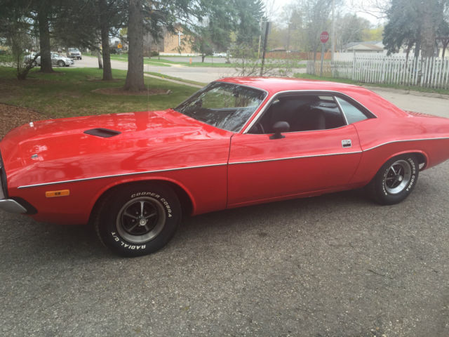 | HI. p for auction is my 1973 dodge challenger ralley. t was in a barn since 1992. at some time before I bought it it had the body work done and painted. I had all new interior installed including dash pad. eat covers carpet. oor panels rear speaker deck panel. t also has a new sound system installed with a 2600 watt amp and subs. othing was butchered [ so if you want to take it out to put it back to original it can be done]the motor is a 318. I put on valve covers. ntake . arb. ir cleaner. his is a numbers matching motor and trans to this car. f you want I still have the intake . arb air cleaner. alve covers that was originally on it from the factory. It also has power steering. nd power front disk brakes. This is an ac car It's all there. But needs to be gone threw to make it work. I installed new tires. It even has the original exhaust on it yet. And not rusted out. It has all new ignition parts. allast resister. ist. ignition box. plug wires. nd plugs. New starter. The car can use a wet sanding and buffing to be really nice . It looks good now but can be better. Contact me with any questions. Look at the pictures It will tell it all. Good luck. Thanks |