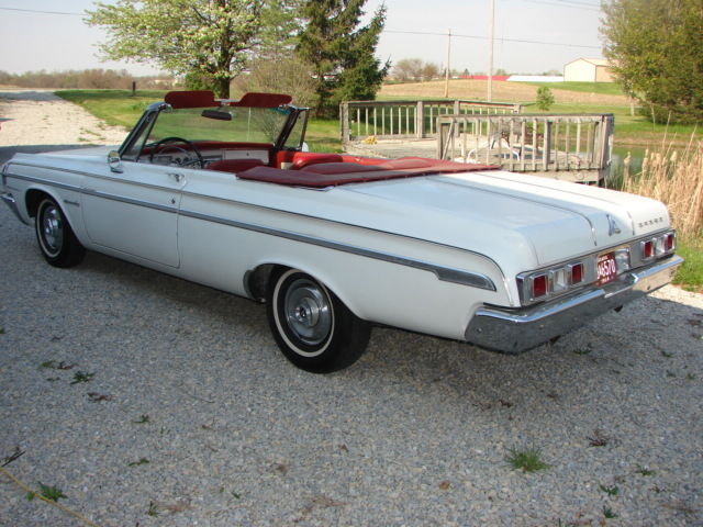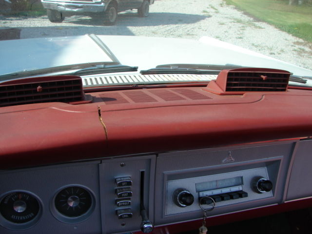 | Up for sale is a very nice solid rust free 1964 Polara 500 White with red Interior sweet running 318 wide block 2 bbl carb A/t. A/c. /s . P/b. this car is a sweet Car i bought it a yr ago too take my mom cruising around some and to use it as a reference for putting together another 64 polara Conv with a 426 Max Wedge Purchased in San Antonio Tx off the 2nd owner he owned since 1984 who purchased it from orig owner car was sold in Denver Co. Jack White Dodge there is a history report that will go with car along with certicard and all orig paperwork last owner said he roughly put 2. 00 miles on car since 1984 the car has been painted prior to 84 believe it's laquer paint there is some light checking and Interior appears to been reupholstered at some point again prior to 1984 . This car is as solid as you will find out there. car is very presentable i've driven in on trips 1-1/2 hrs away it just purrs down the highway it has drum brakes all around tires are poly good cond It has some leaks under neath Trans shifts perfect Chrome and stainless is very nice cowl is perfect Dual exhaust as factory did (not Loud) you can steer this car with 1 Finger !!! brakes are good Top goes up and down as it should and retracts great at one time it had an alarm system on it The paint has some minor chips . lakes . tc The trunk is dressed with carpet trunk pan solid and good No rust in this car id be happy to take any other pics needed !!! Car is not restored nor is it perfect but if you want a nice one to cruise around or restore this is it ! I can deliver if in a reasonable distance or deliver to Mopar shows or Have a good trucking company that can deliver very nice and reputable guy. Car is sold as is where is come check it out if you wish check my feed back! Thanks for looking Dan 765-465-7663. |