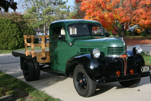 | Up for sale is my 1946 Dodge Dually. Flatbed. It has a 3 speed Manual Tranny. Flathead 6. No power anything. The paint job on this truck is excellent. It's a fun truck to drive. Interior is in excellent shape and so is the wooden bed. |