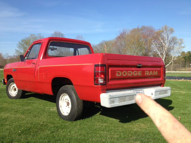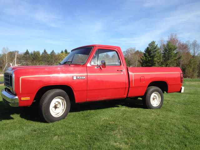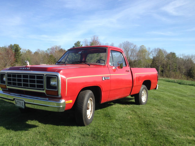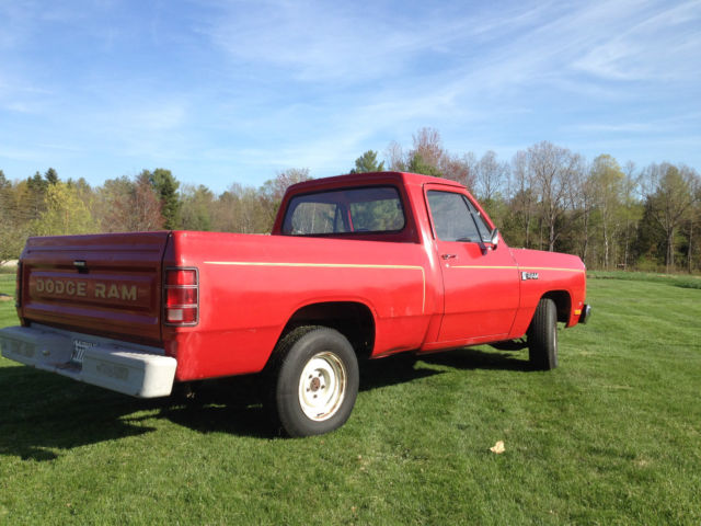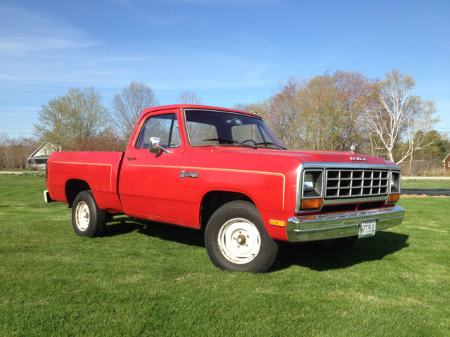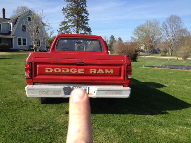 1985 Dodge Ram D100 with a Slant 6 motor. This truck was special ordered in 1985 with No radio No power steering No AC. It was never modified to have these added on either. This truck is exactly the way it came off the factory floor 30 years ago. The truck is a manual 4 speed 2 wheel drive with only 64000 original miles. The interior is original and in perfect condition and the paint is also original and in near perfect condition. I am the second owner of the truck and purchased it from the original owner who exclusively used it during the summer. It was stored under cover (in a barn) the rest of the year. The truck drives perfectly and is on the road right now taking me back and forth from work. The only reason for the sell is I need a 4 door truck as my family is getting bigger. Check the vehicle history report to see that it was only registered in Waterford Maine since 1985 up until last fall when I purchased. This truck has a few potential futures. It is perfect the way it is and can be driven for many many years to come and kept as a piece of American history. OR it could be turned into the perfect Mopar hot rod truck. Toss in a Hemi Crate engine and let her roar. I can guarantee you wont find another example of this truck on the East Coast and is probably one of the top original examples in the nation. Please email with question or if you want specific pictures.