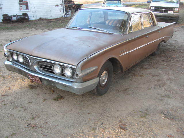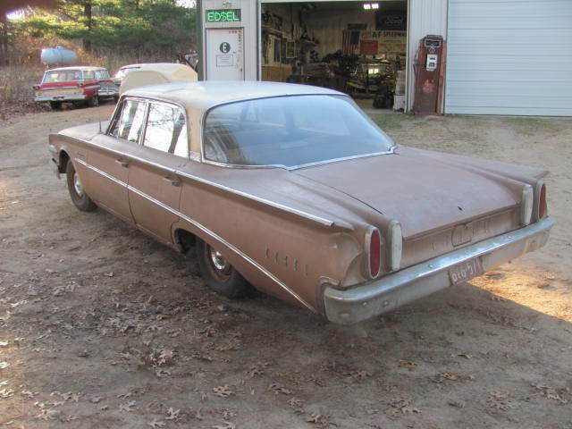 1960 Edsel Ranger 4dr, 92 V8(seized) automatic trans, U12W701517 58A-HM1-24-06K-3-3 Car has been inside and not on the road since 1967. It has some rust in the center trunk pan that is getting soft, lso the lower rear quarters of the car have been repaired at one time (see pic) the rocker panels have also been replaced and the inner rockers are rusted(see pic) Radiator support is rusted as is the battery tray. Car rolls easily but both rear brake drums were cut off due to being seized on, loor panels and frame are all good and solid, ar is missing both front parking light lenses and some of the rear taillight lenses are broken and cracked, Car has no title, lthough a bonded title from the State of Wi is available for an extra fee of $300-500. This car is a great candidate for restoration as not many of these were made or are left. email with any questions. Paid for in person within 30 days of auction end.