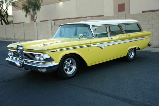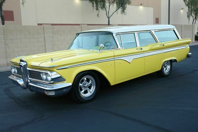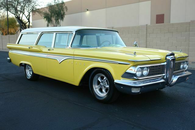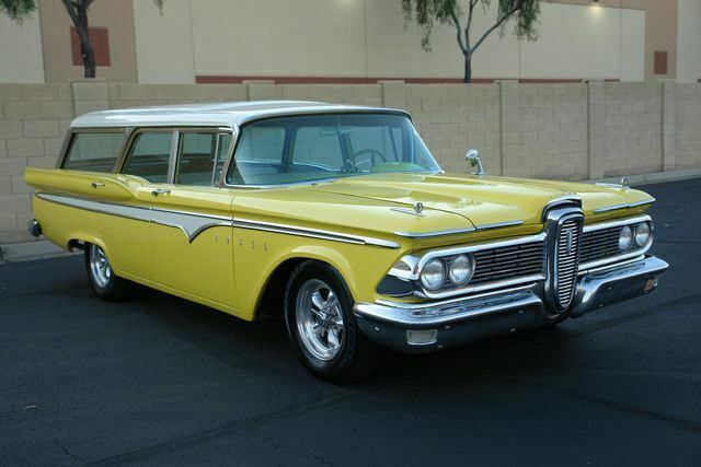 Arizona Classic Car Sales is thrilled to offer this beautiful 1959 Edsel Villager Wagon in beautiful yellow over tan interior. This is one rare car and with only 5687 built in 1959 to find a true rust free car is tough. This car has been restored to original condition and runs and drives like a dream. V-8 engine with a 3 speed automatic transmission, great chrome, awesome interior, this car is ready to go. Please don't hesitate to call anytime... with any questions or offers.. 623-237-9416623-237-9416 text