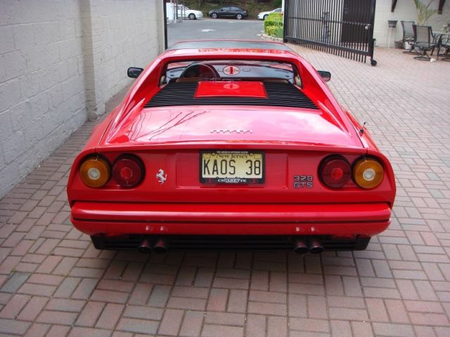 | This is a picture perfect 328 GTS, t just had a major service such as belts, alve adjustment, ater pump, uel tanks, adiator, rake flush, nd engine bay insulation. It is a european car with 45,000km. The car is listed at 28,000 miles because that is the conversion from kilometers to miles. The actual VIN of this Ferrari ZFFWA20B000072957, t was legally transported from Europe to America. |